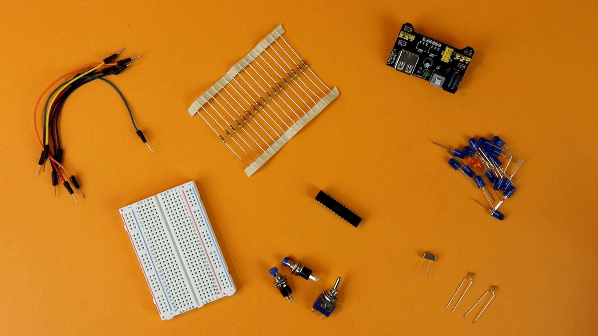 There are quite a few components needed for this project, most of them you can see in this picture: