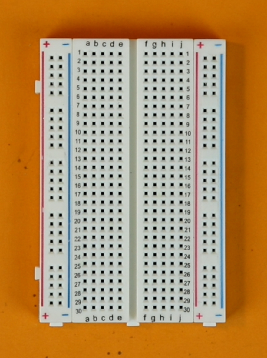 This is your empty breadboard. Place it in front of you with the hole 1a to the top left.