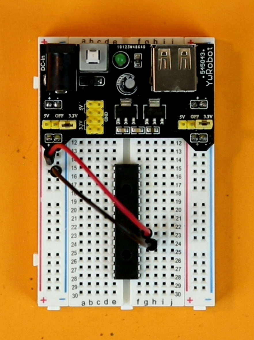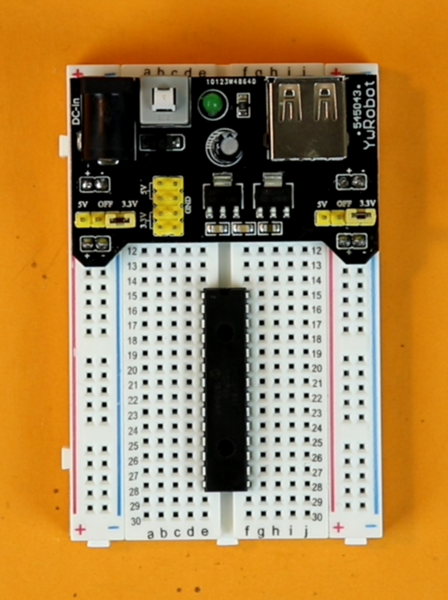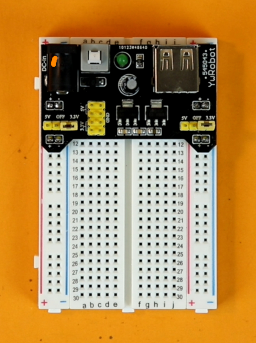 - Power on the USB breadboard power supply by plugging in a USB cable.