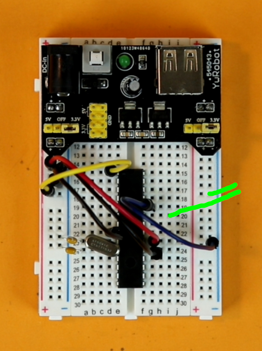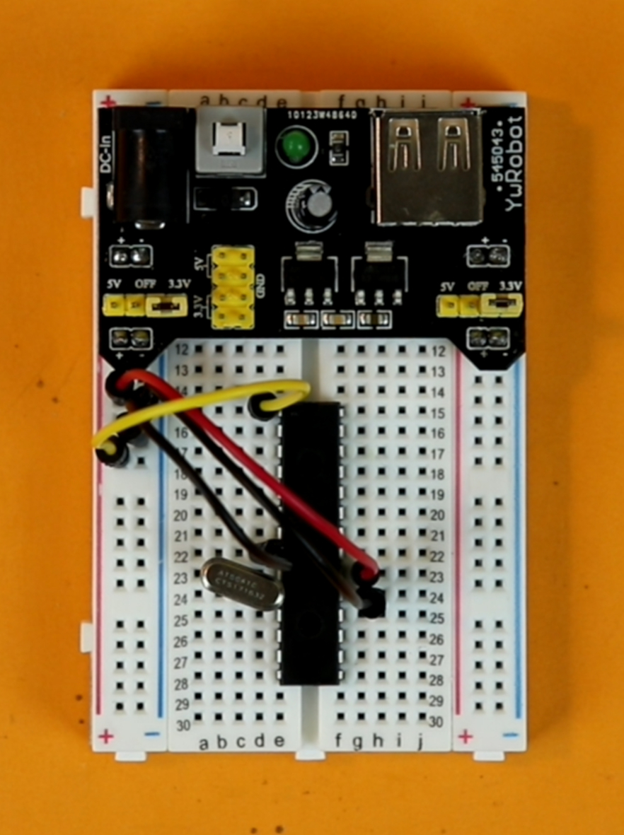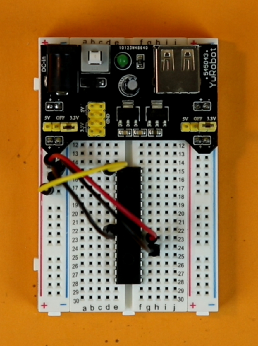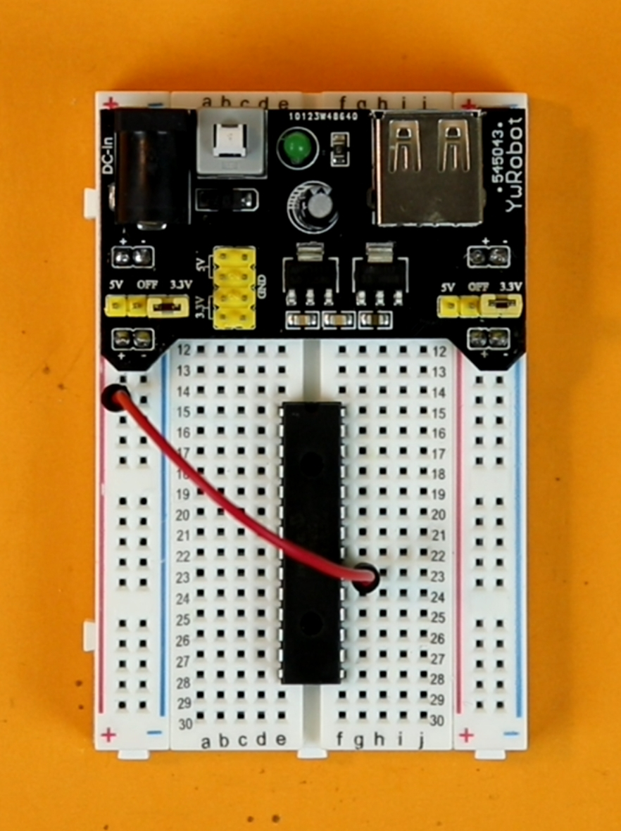 - Power on the USB breadboard power supply by plugging in a USB cable.