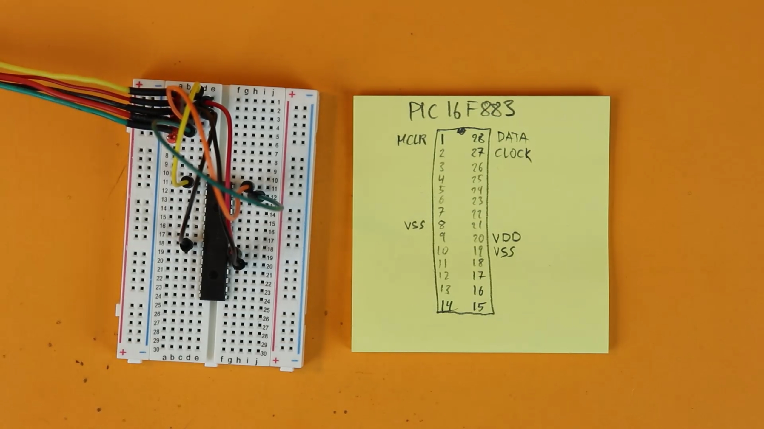 - The PIC16F883 is connected to VDD (+5V), VSS (ground), and MCLR (Master Clear) exactly as we know it from the PIC16F627A. The only difference is that the PIC16F883 has two ground connections and not just one.