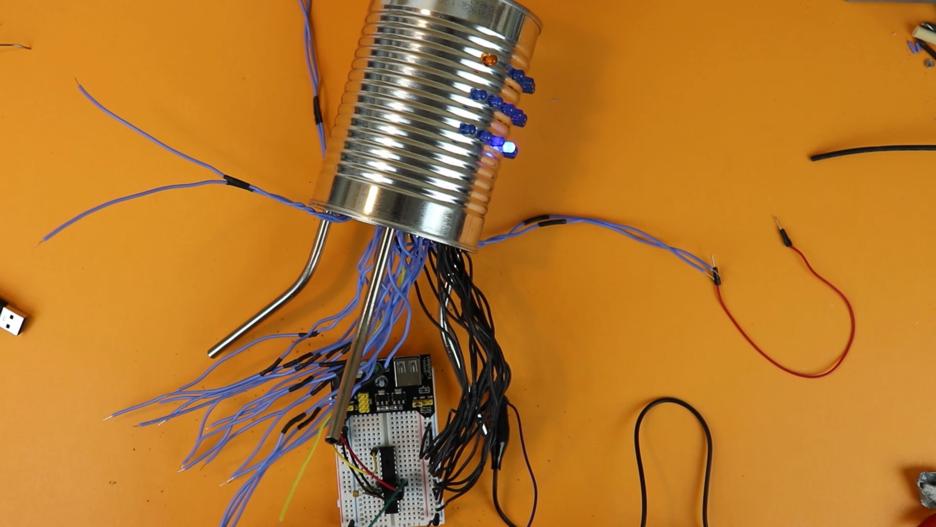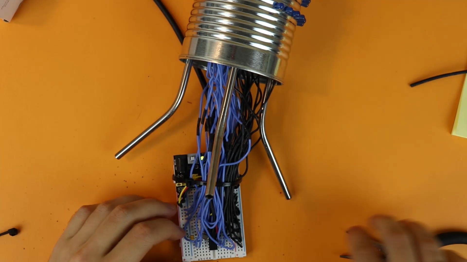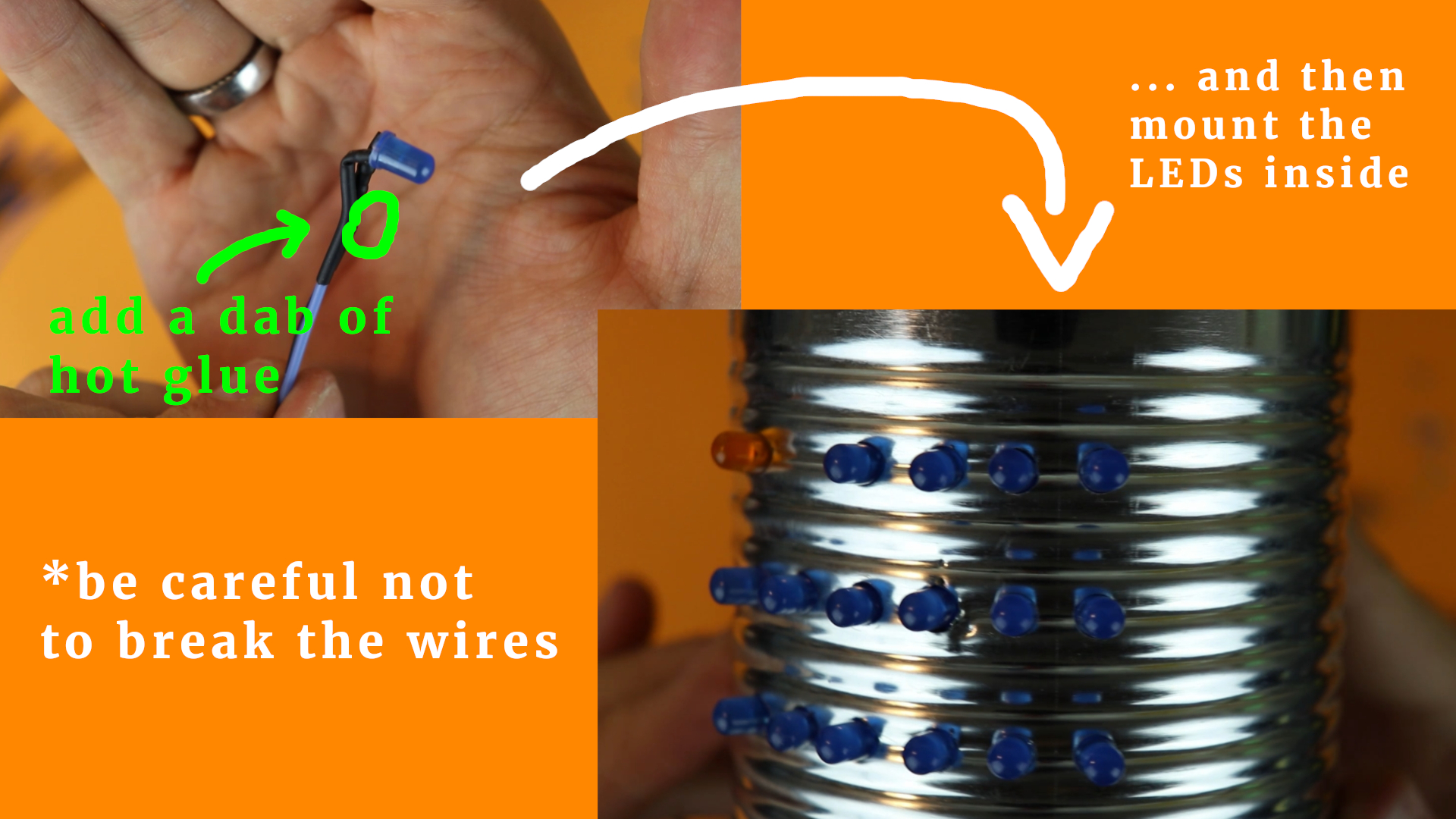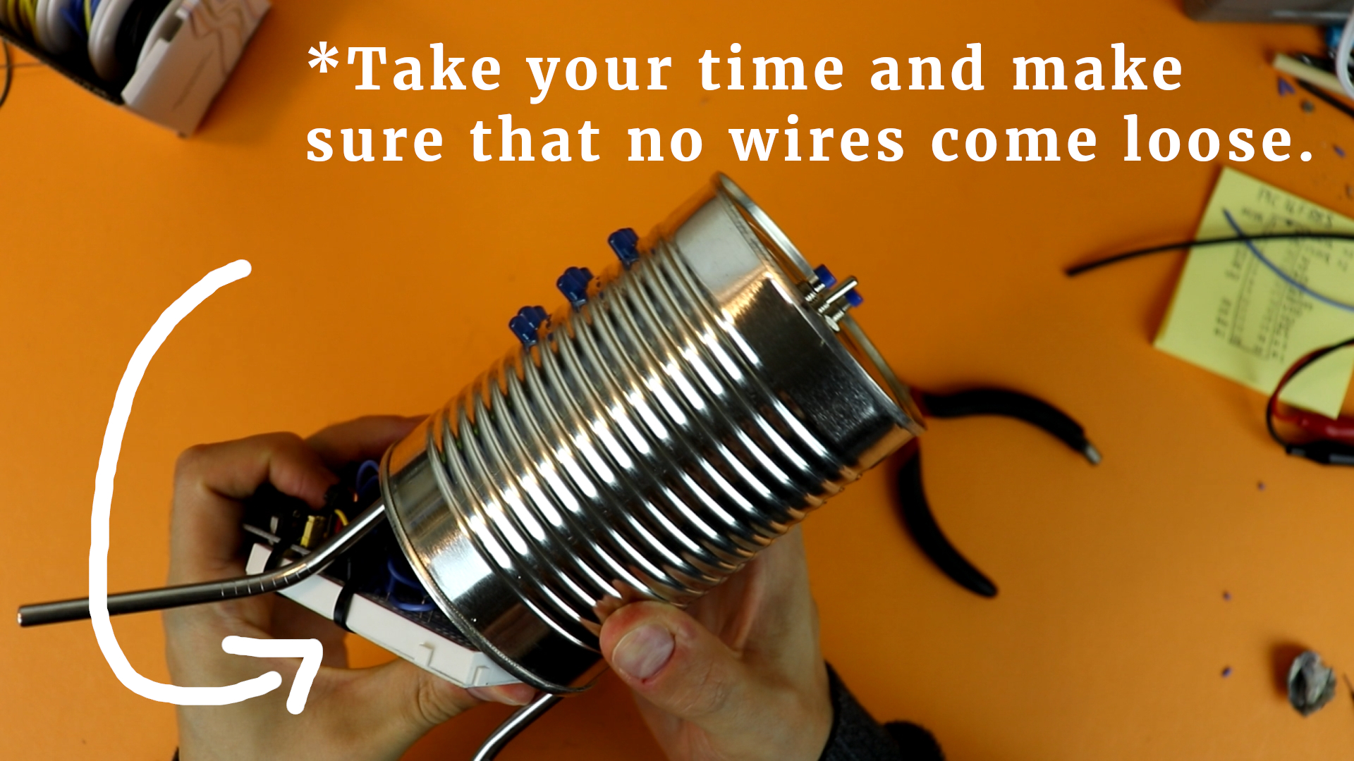 Now we are almost done! We just need to connect the LEDs. This can be a bit messy because there are many wires sticking out the bottom of the can: