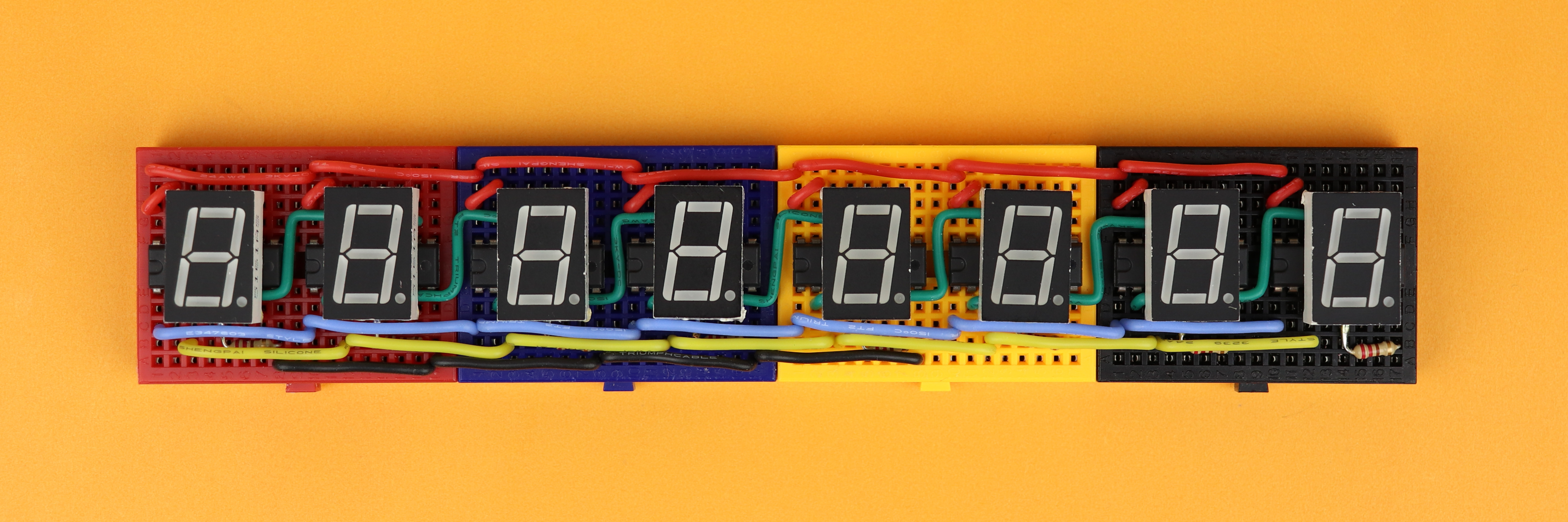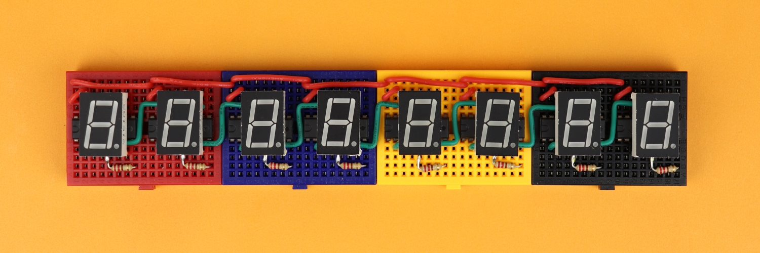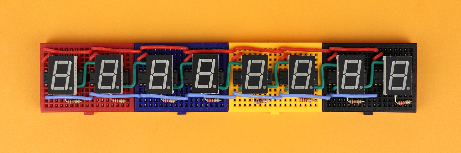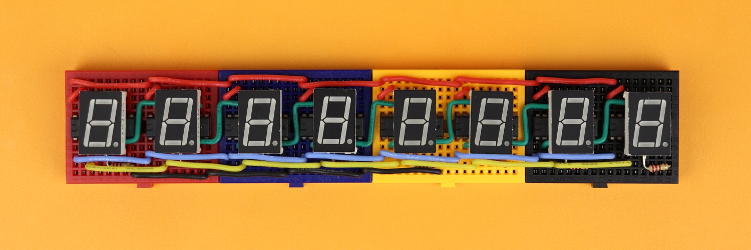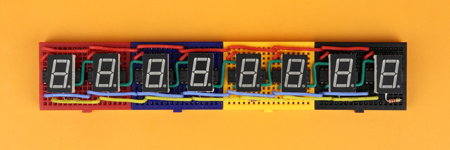Alright, now we can in principle build the circuit following our schematic above. But before we do that I want to talk about the source code that tells our microcontroller how to send out the data to the shift registers so that some text appears.