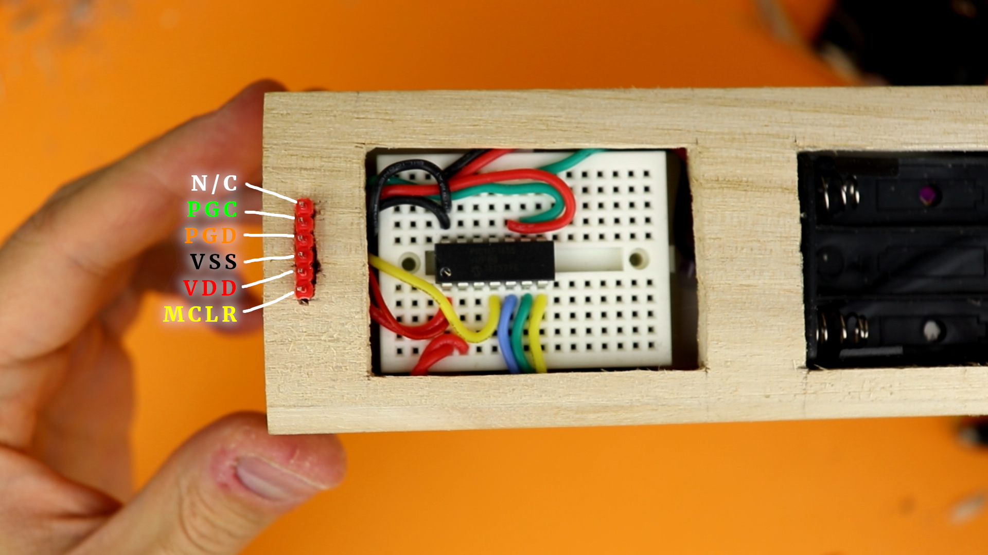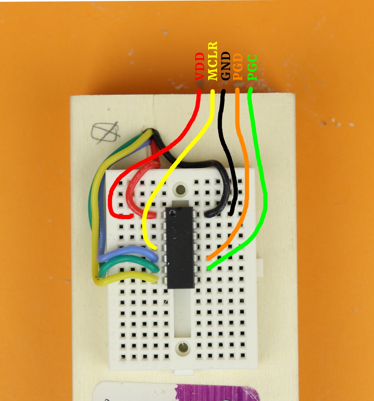 - Alright, so all that JP1 does is provide convenient connections to both VDD and ground as well as to the three programming pins MCLR (master clear), PGD (programming data), and PGC (programming clock). The sixth pin can be left unconnected.