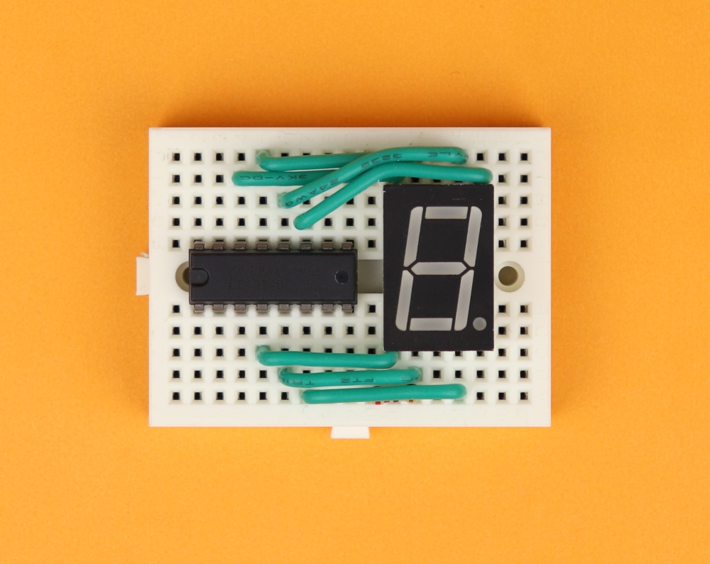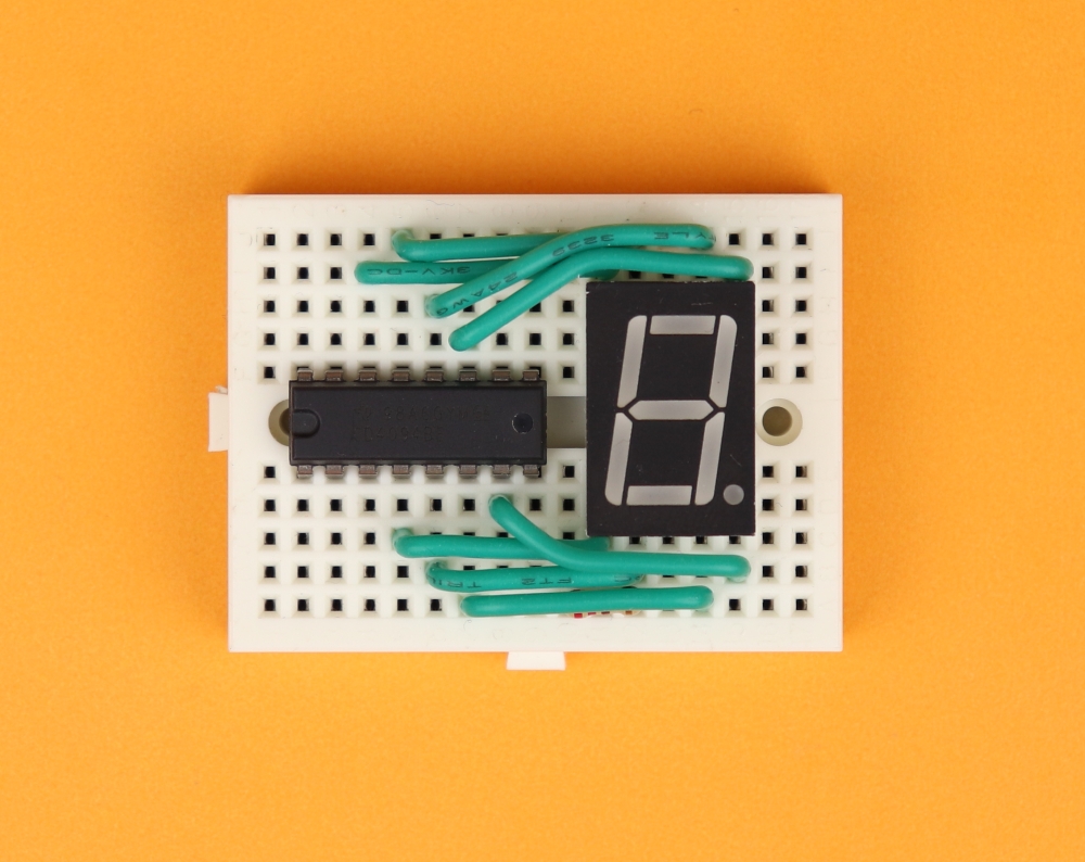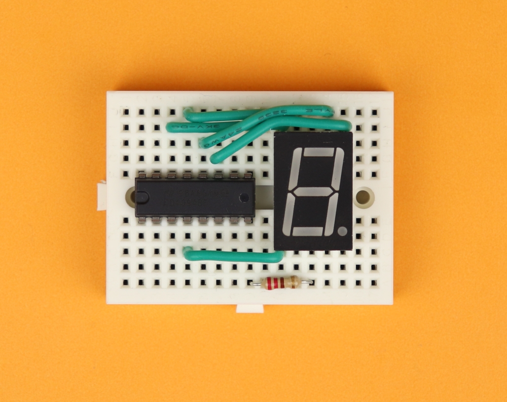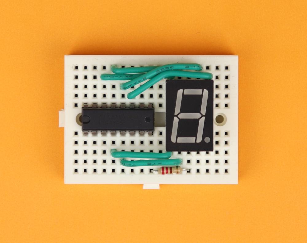 - The pin OE (Output Enable) is permanently tied to VDD (which is +4.5V in this case) because we want all 7-segment displays to be on during normal operation. If you connect OE to ground instead, all outputs Q1-Q8 will be low.
