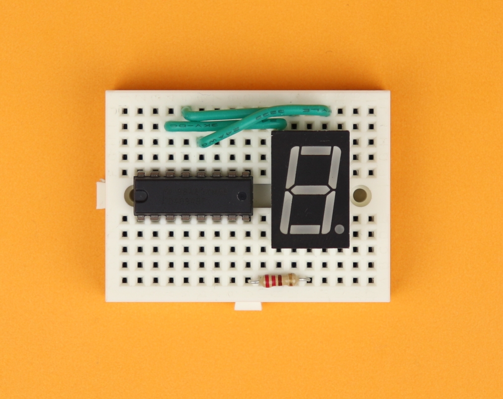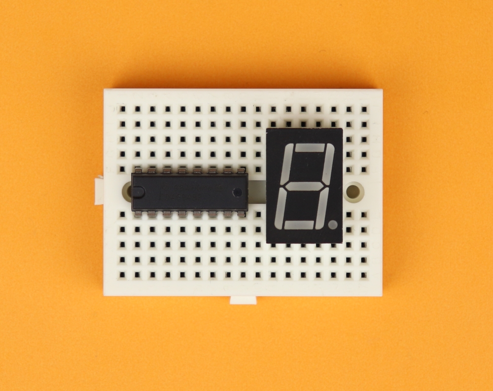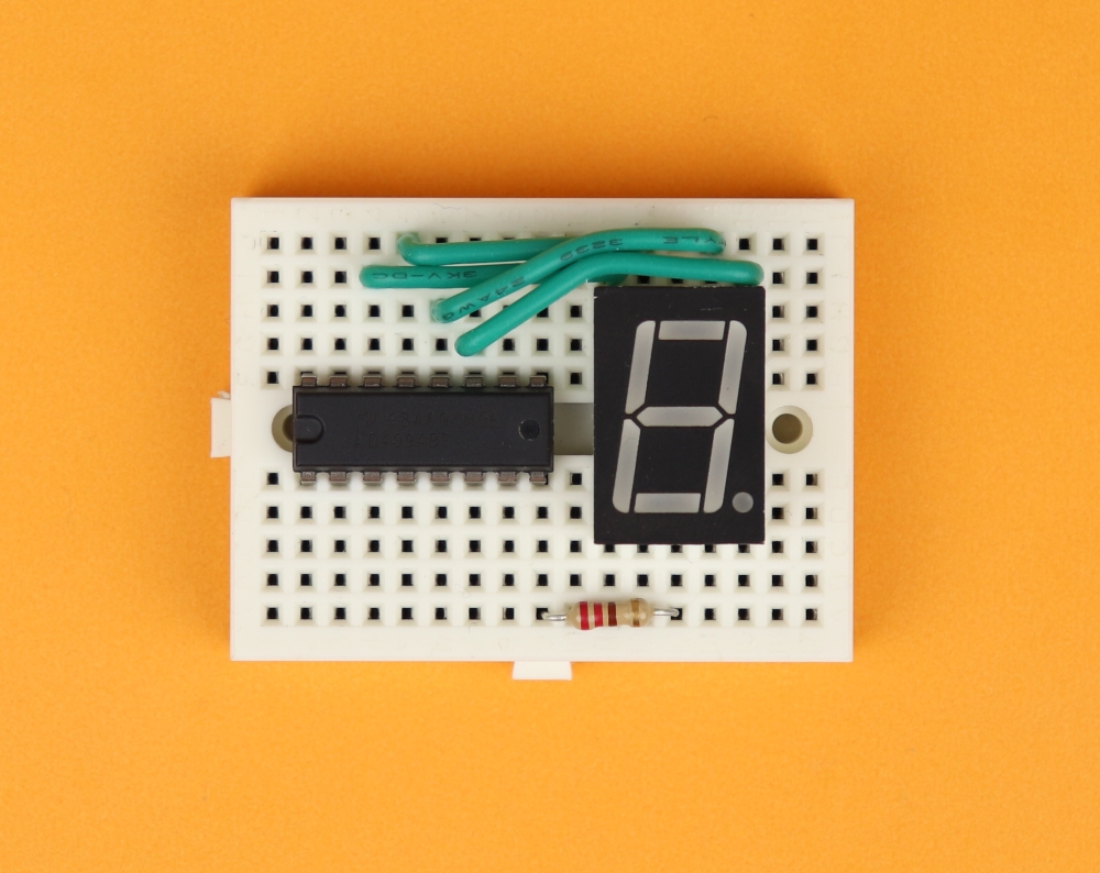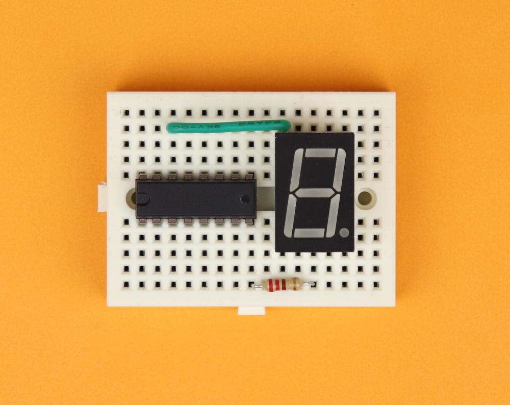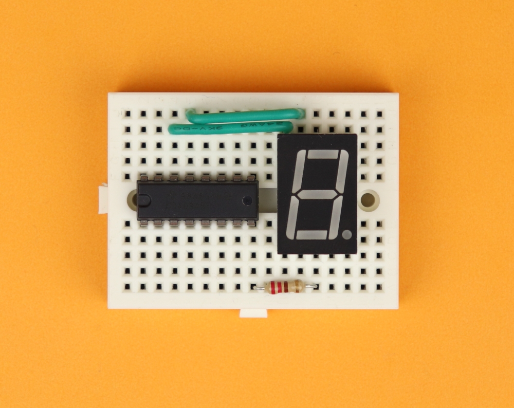 - The pin OE (Output Enable) is permanently tied to VDD (which is +4.5V in this case) because we want all 7-segment displays to be on during normal operation. If you connect OE to ground instead, all outputs Q1-Q8 will be low.