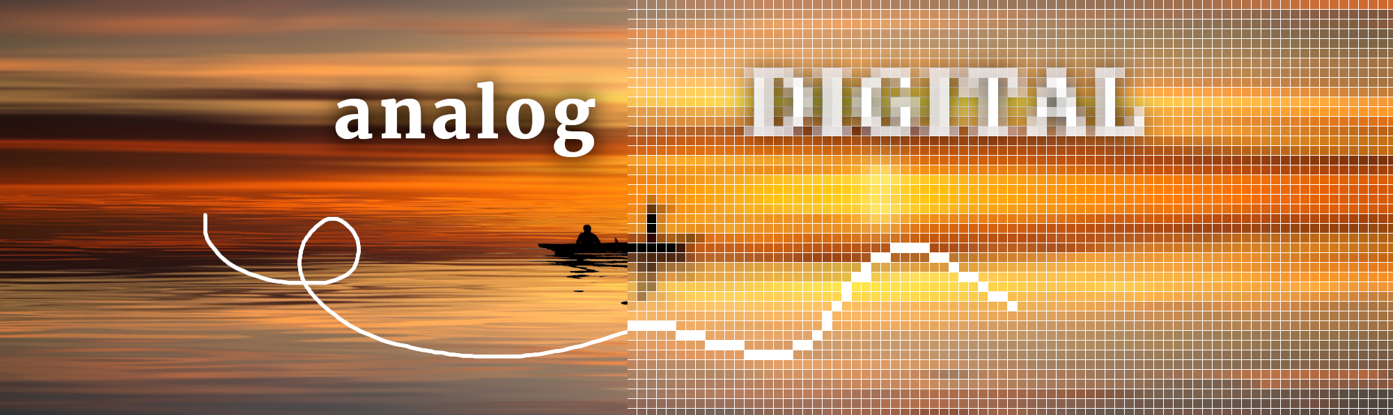 Care for an example? Look at the above sunset. If you have ever seen one in real life, you can imagine the perfect gradient from orange to yellow. But on a computer we only have a finite number of colors. We also only have a finite number of pixels. So if you compare the left “analog” situation to the right “digital” situation, you see that it has been pixelized, or, in other words, discretized.
