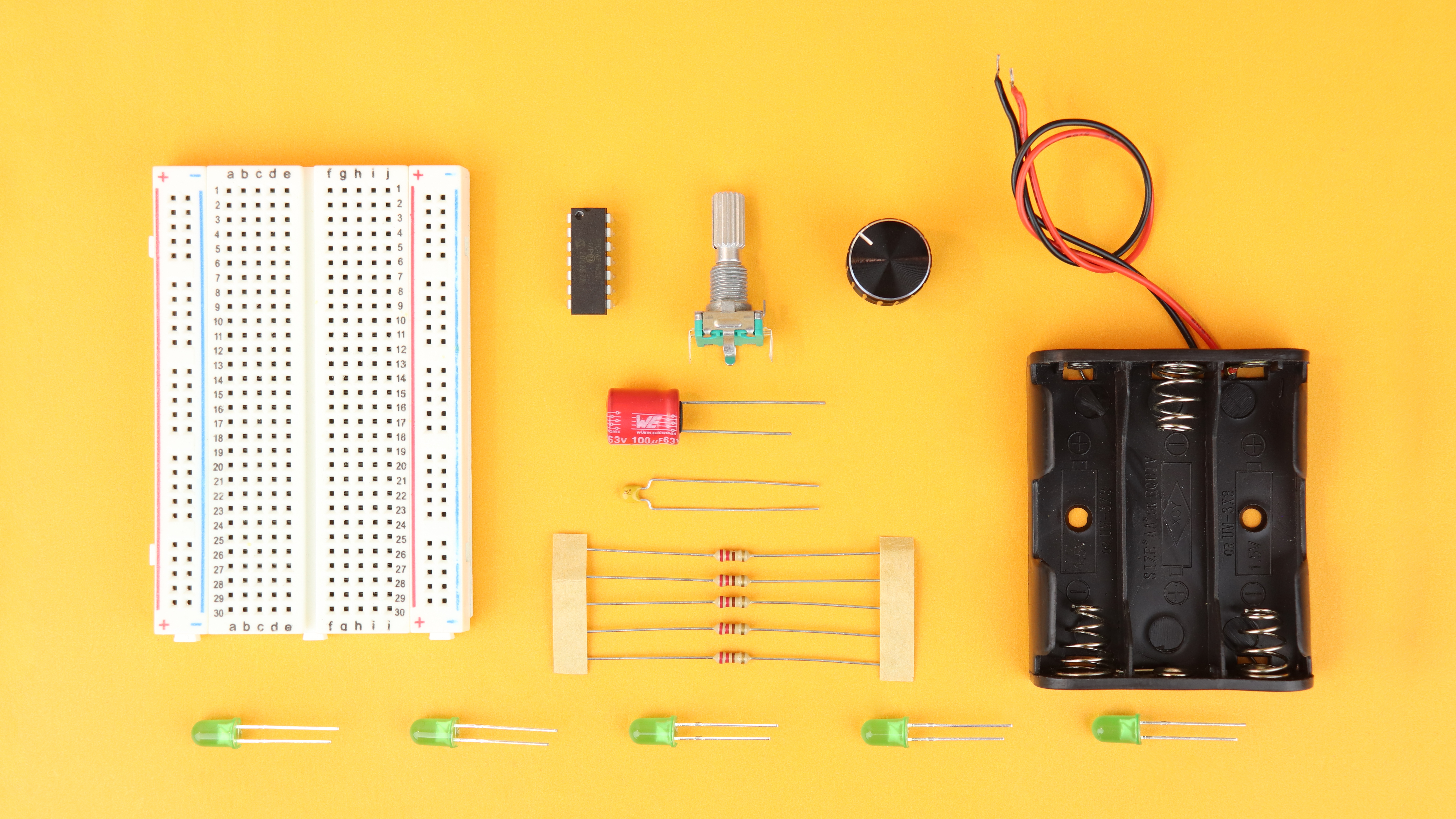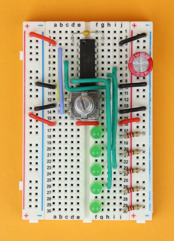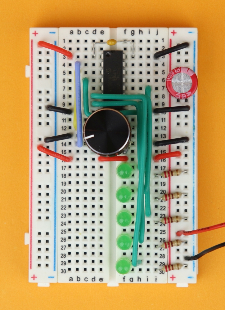Now of course we have to program the functionality into the microcontroller, but for now: let's get this circuit built on our breadboard!