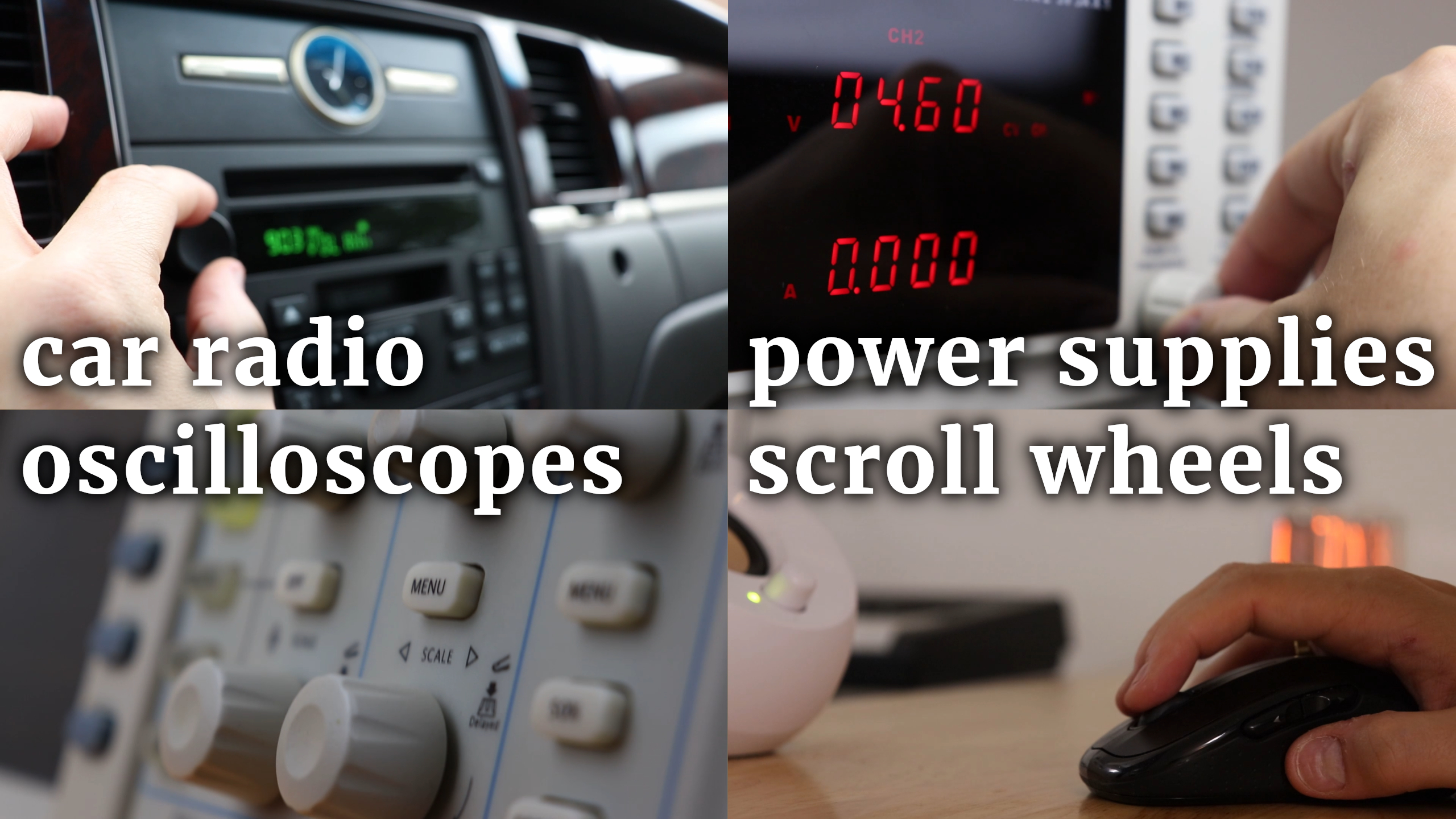 And today I want to add the rotary encoder to this list, specifically: an incremental rotary encoder with a built-in pushbutton. You can find these rotary encoders everywhere: in your car's radio, on your bench power supply or oscilloscope, or in the scroll wheel of your mouse: