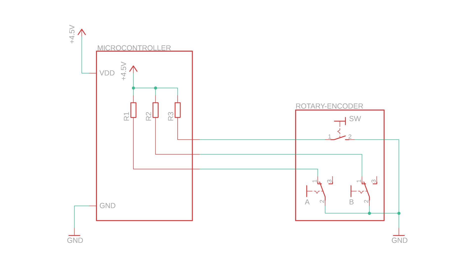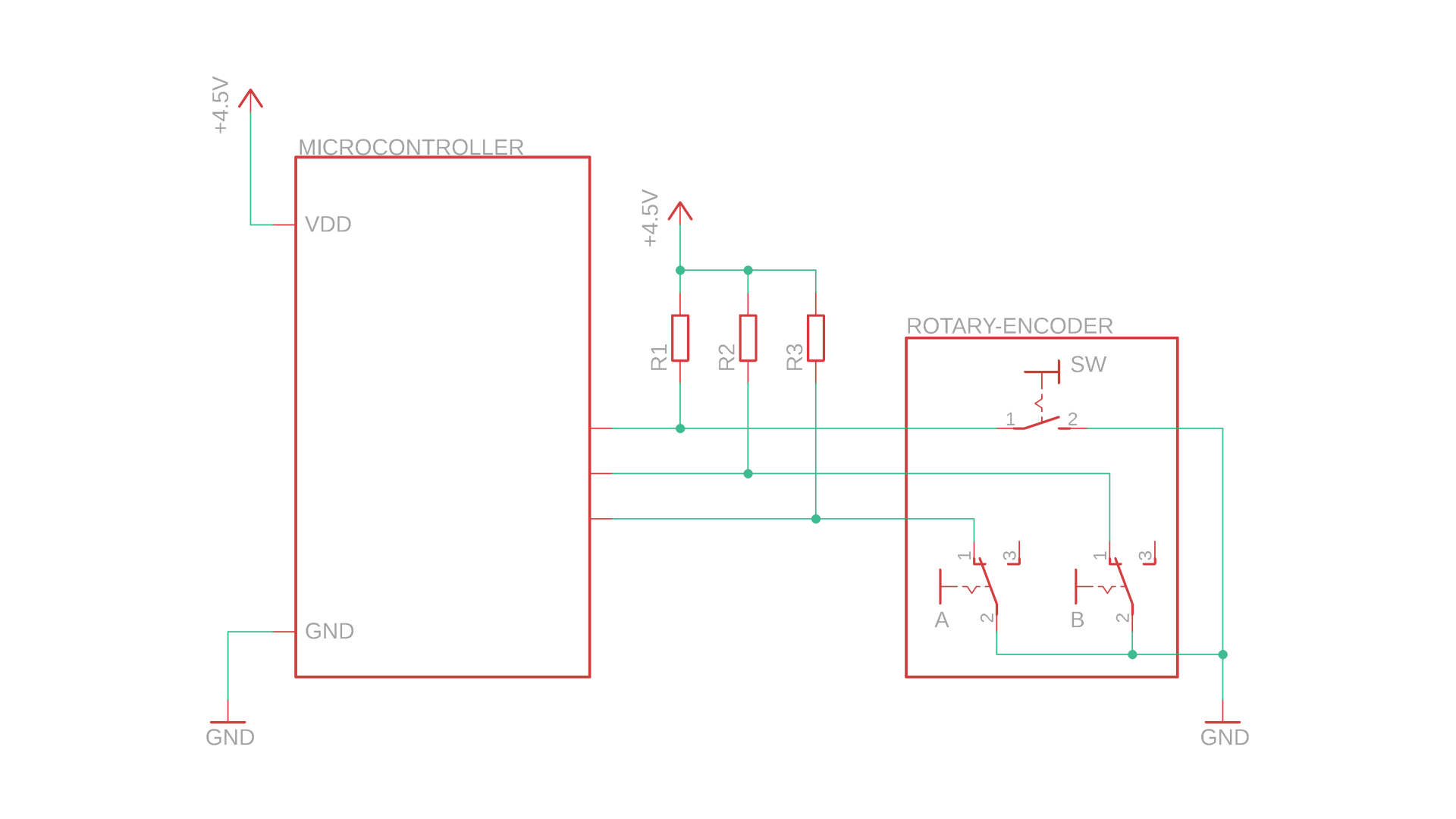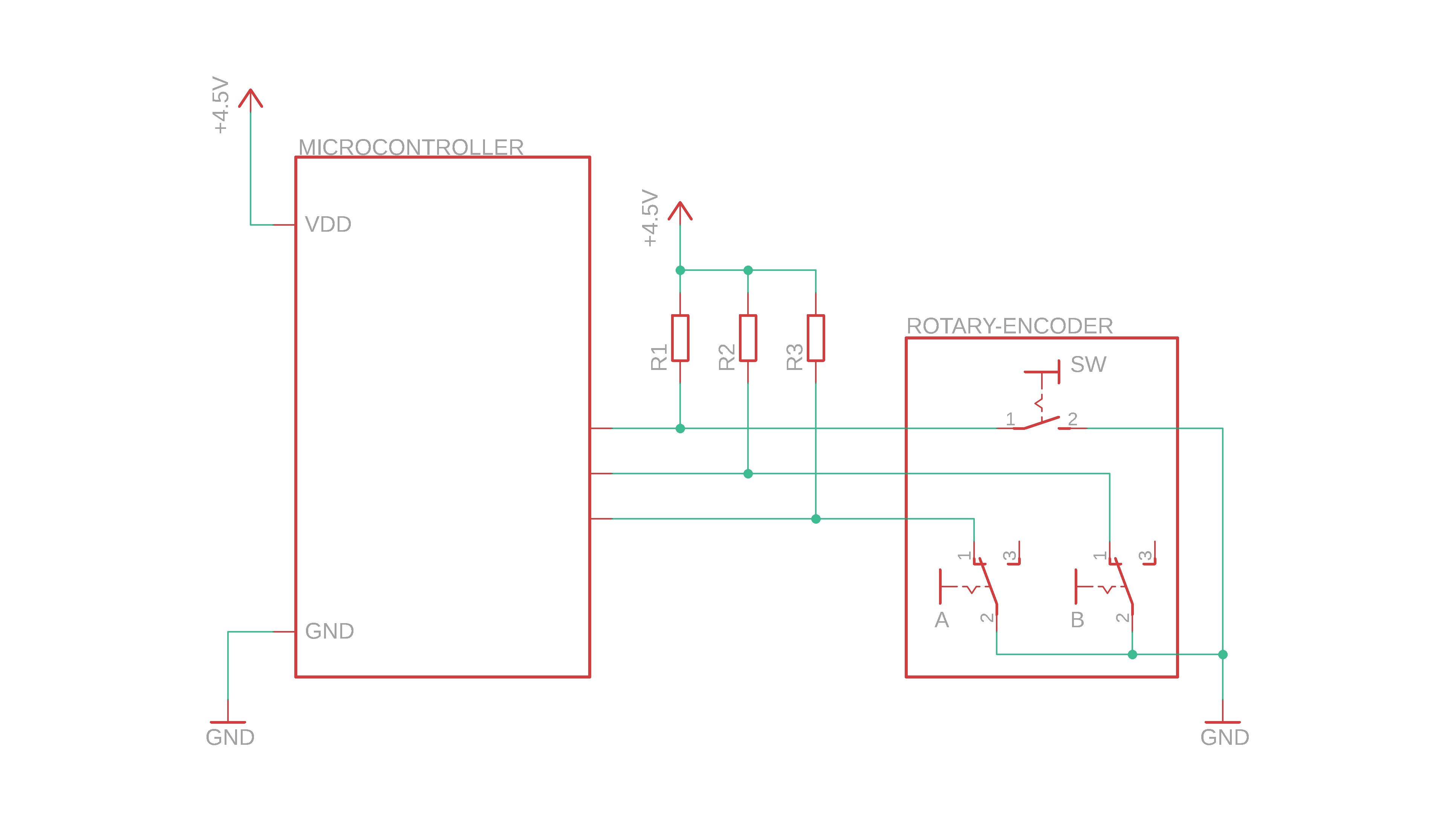 Okay, and here it is, our schematic to read out a rotary encoder with our microcontroller: