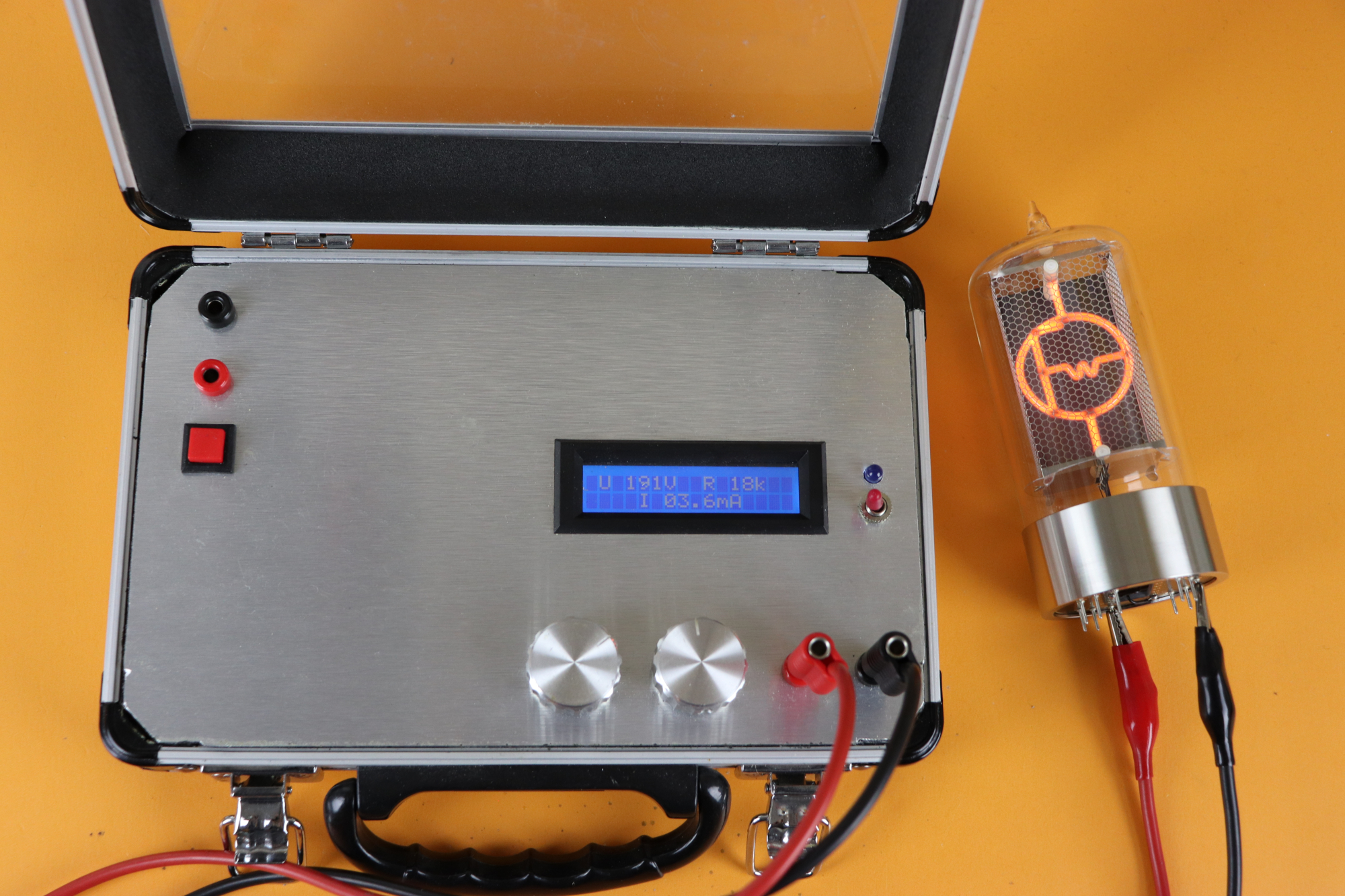 I built this myself, but I decided to include this power supply here because I actually do use it a lot. I like this supply very much because it has a built-in current and voltage display, and it has a rather low maximum current of 10mA, which makes this high voltage less dangerous (it is still dangerous, so be careful with that sort of thing).