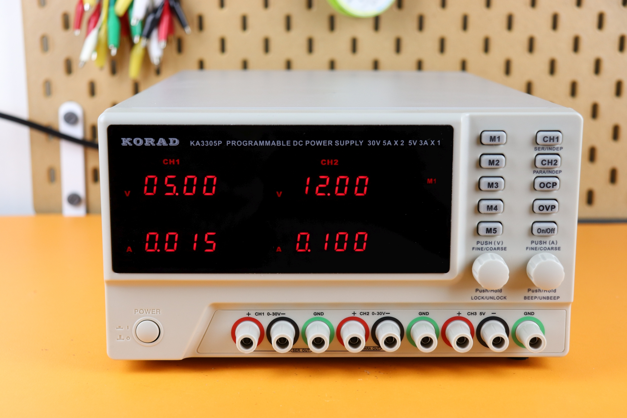 Korad KA3305P (manual, datasheet): 0-30V 5A × 2, 5V 3A × 1