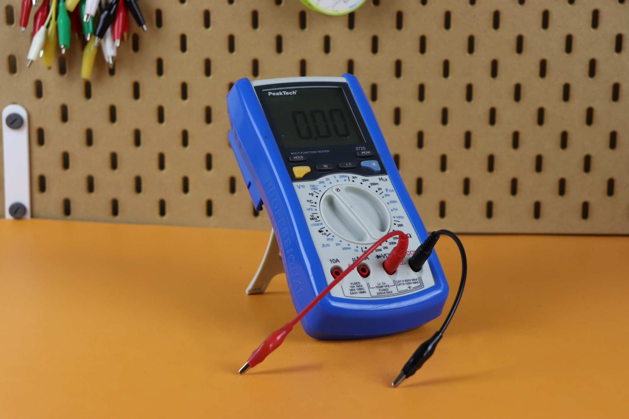 This is a very solid handheld multimeter, although a bit on the bulky side. You can remove the blue plastic protective cover, but then you lose the extractable flap mechanism that lets you sit it up on your desk. PeakTech is a German budget brand, but almost ten years after I bought this model it is still for sale, I think people like it.