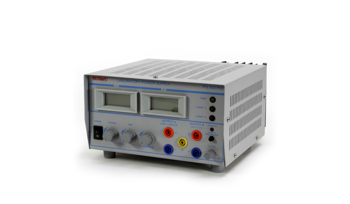 Voltcraft PS 303 Pro (manual, schematic): 0-30V 3A × 1, 3-6V 2A × 1