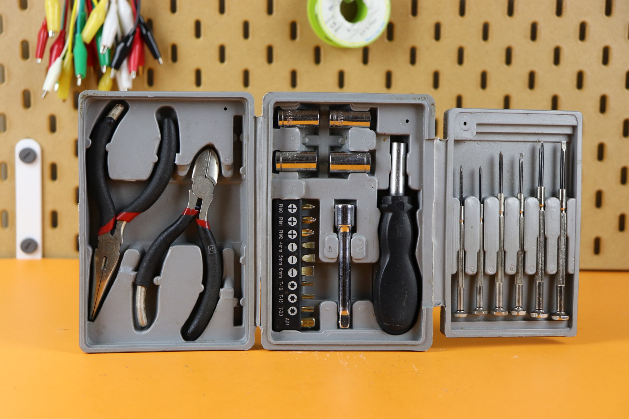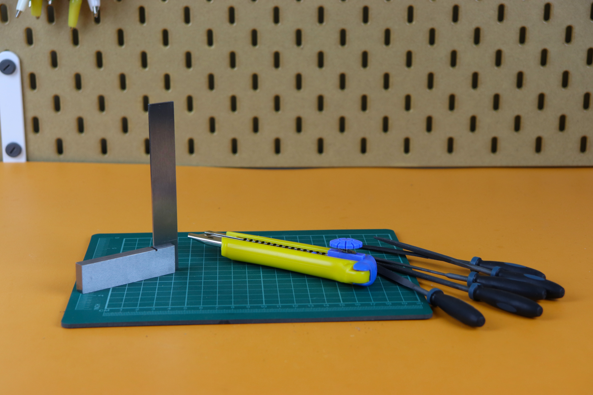 Not much to say here, these are just some random hand tools that I find useful: a screwdriver kit (that my mom gave me when I was 13, and I still use it), a cutting board, a square, some files, a helping hand, and hot glue are all super useful. There are many many other tools as well, but I will spare you the details :)