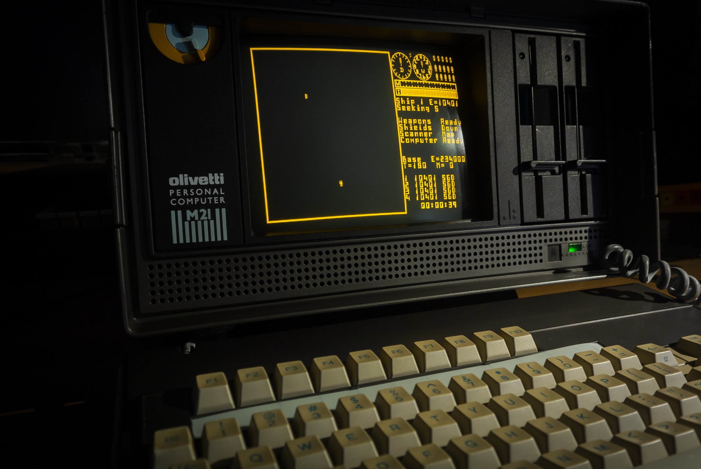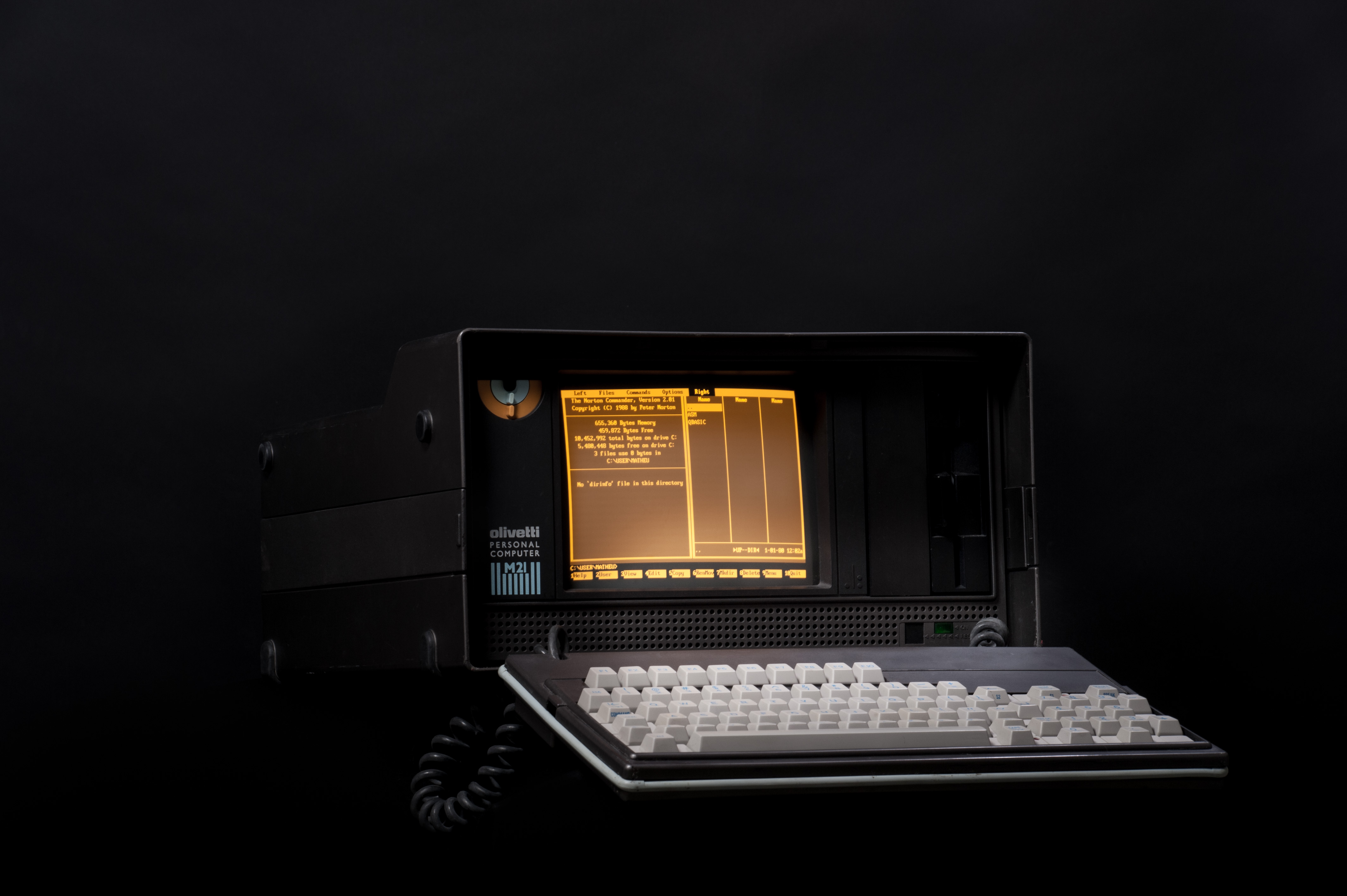 The portable computer M21 from Olivetti was released in 1983 and features a neat amber CRT and can run both MS-DOS and CP/M, making it rather versatile.