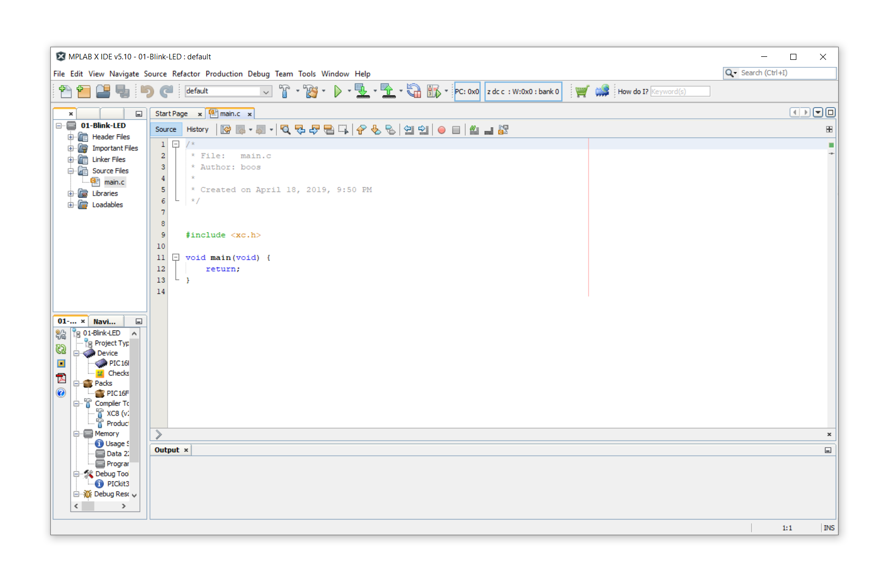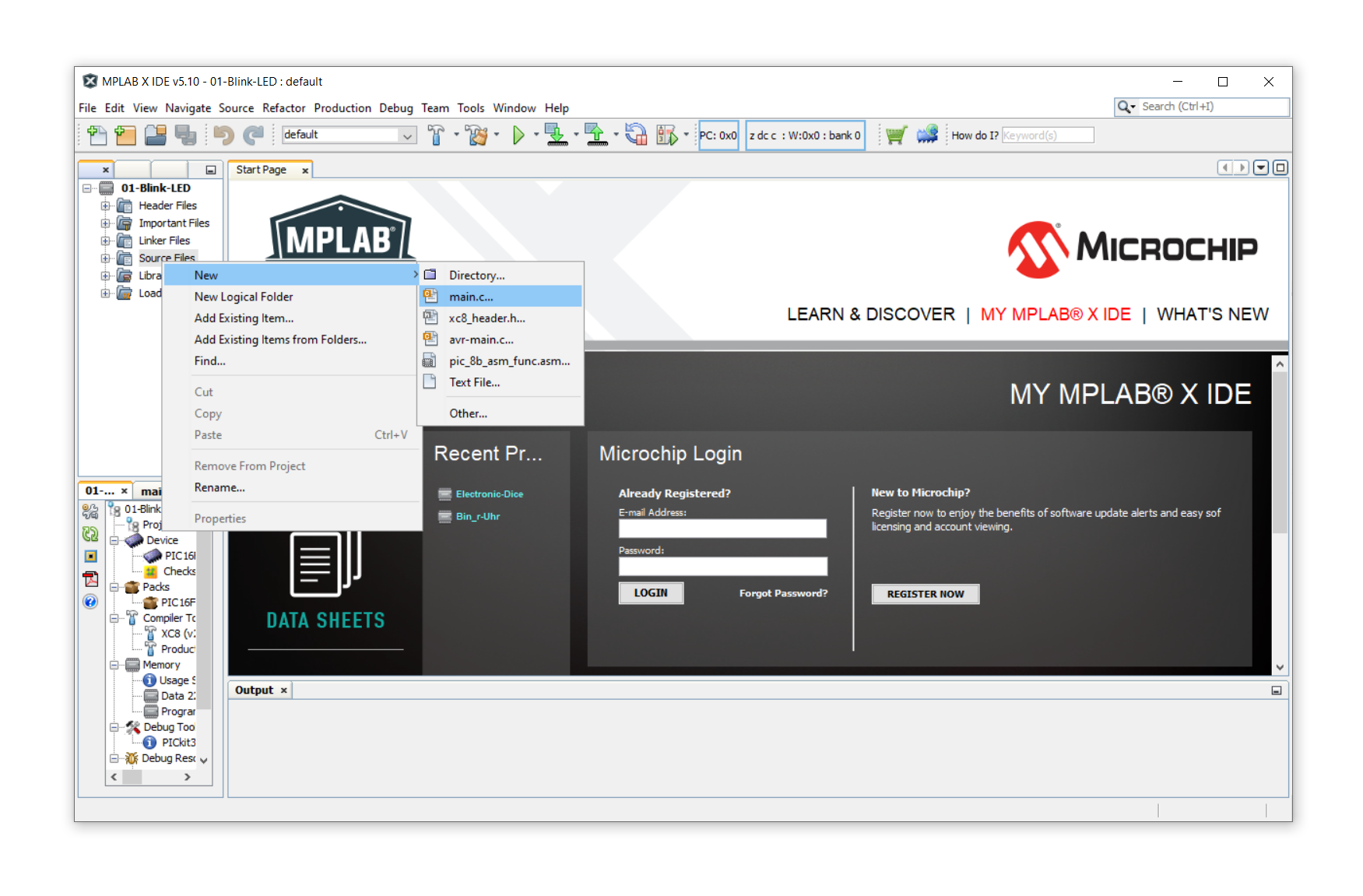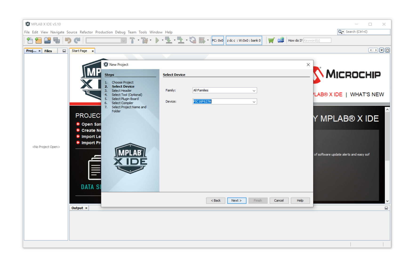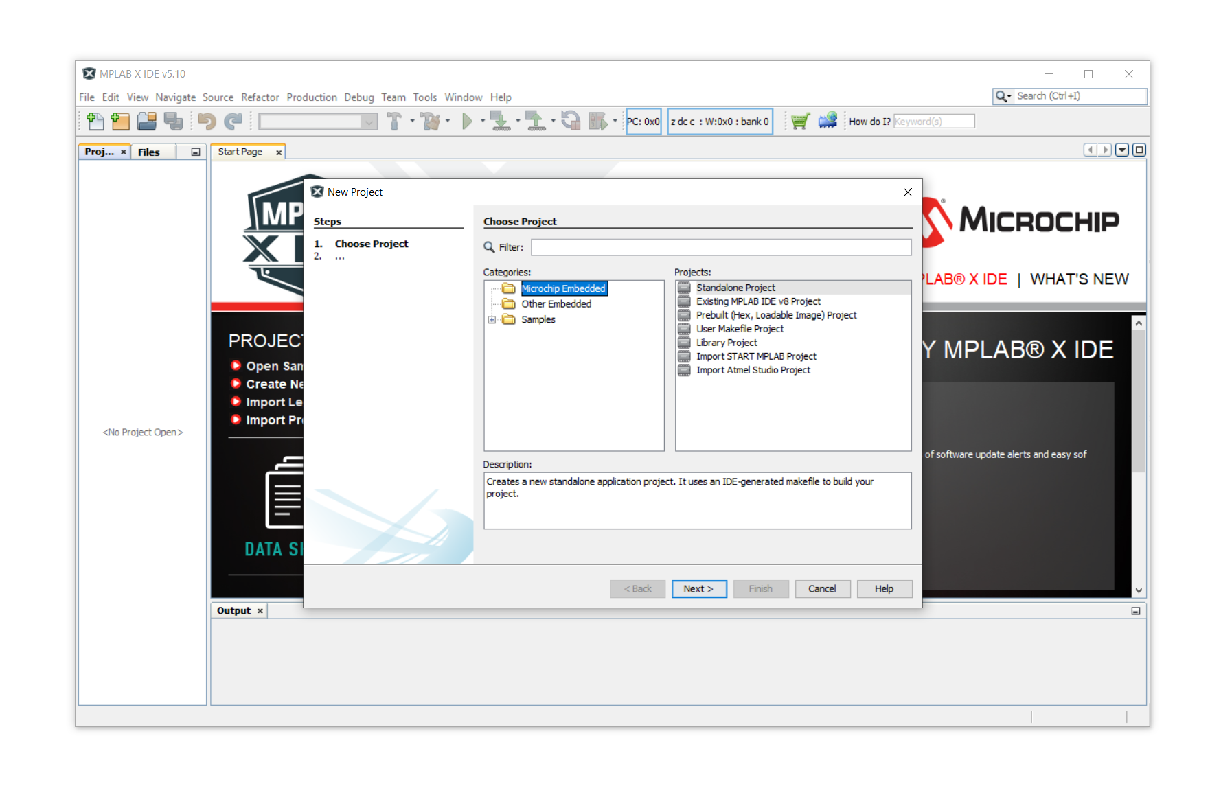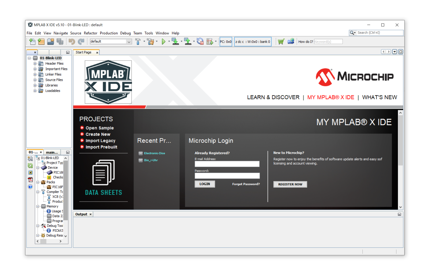 In the first step, we need to set up a project in the MPLAB X IDE which is a lot easier than it seems. Start MPLAB and wait for it to load.