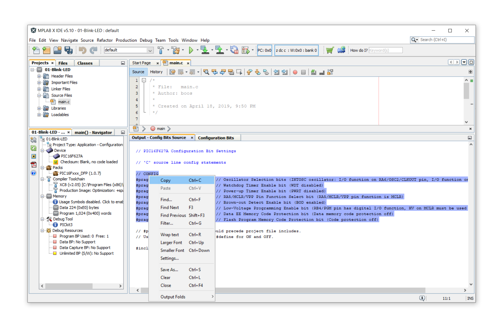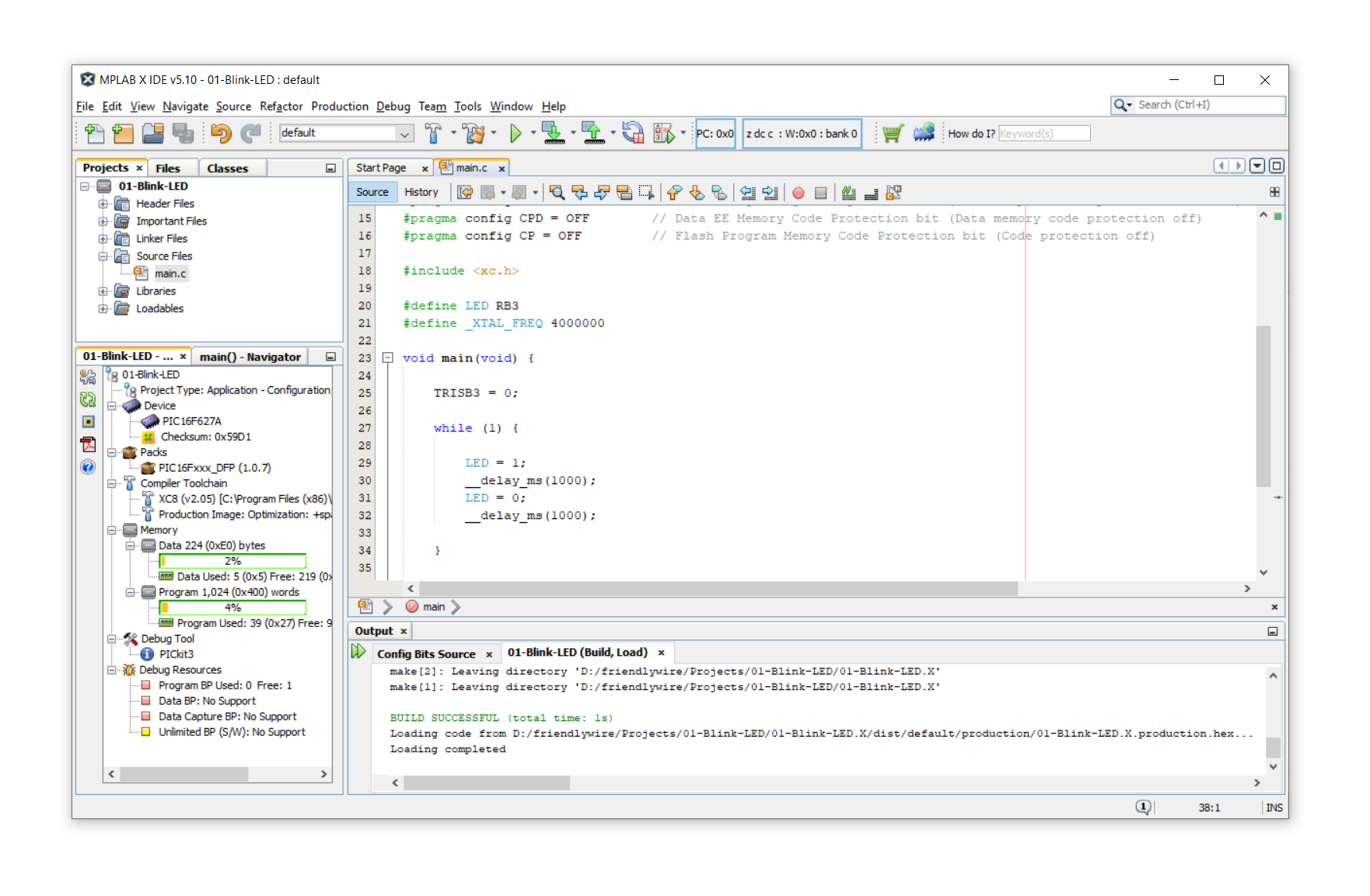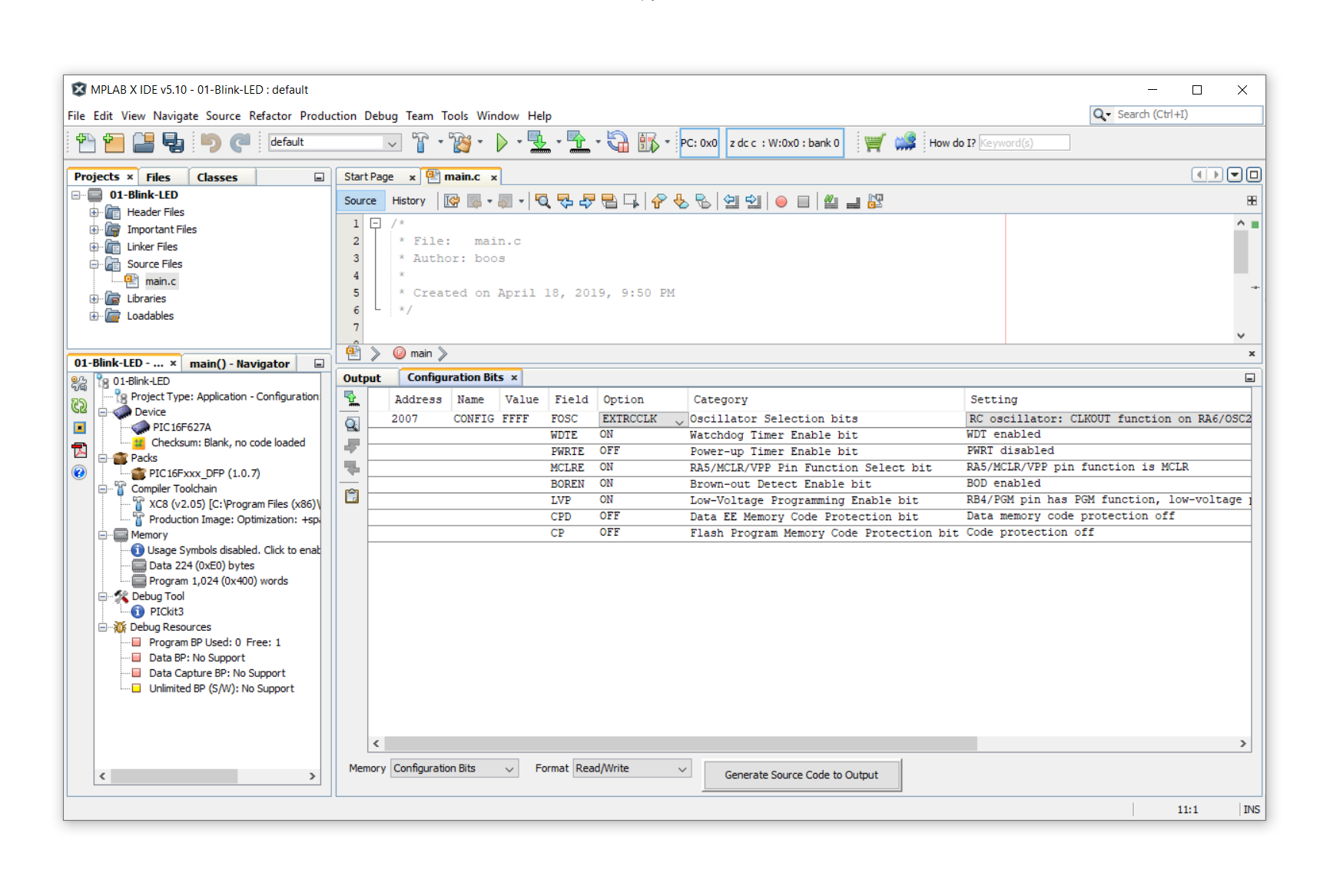 So last week we learned how to transfer a hex file onto a PIC microcontroller using the PICkit3 and the MPLAB X IPE software. For this week's post I think it will be nice to go through a very simple program that makes an LED blink.