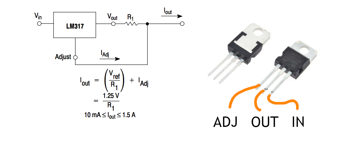 A word of caution: This works well when you want to drive, say, four LEDs in series at a voltage of 12V. It does not work well if the voltage drop is too high because then the LM317 will have to dissipate too much heat.