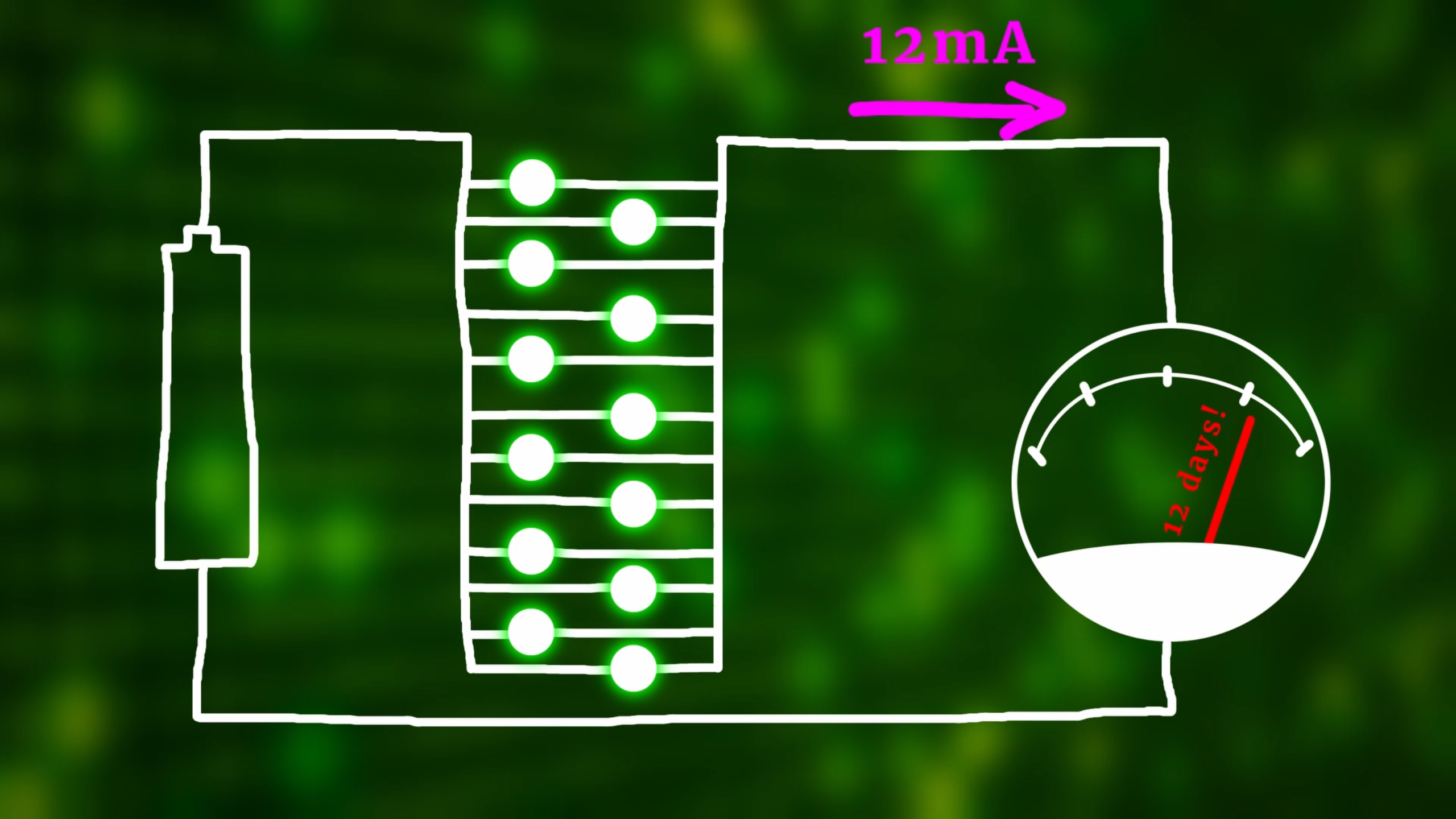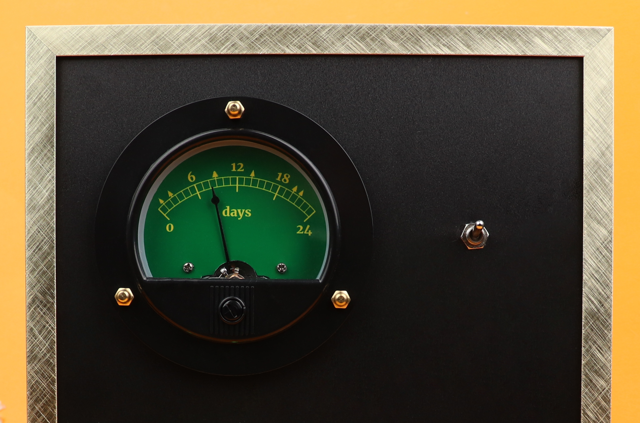 And if every LED takes the same amount of current, then we can use the total current to count the number of days. Let's say every LED takes 1 milli amp. Then a current of, say, 12 milli amps would mean 12 days. And that is exactly what we then read off in the panel meter: