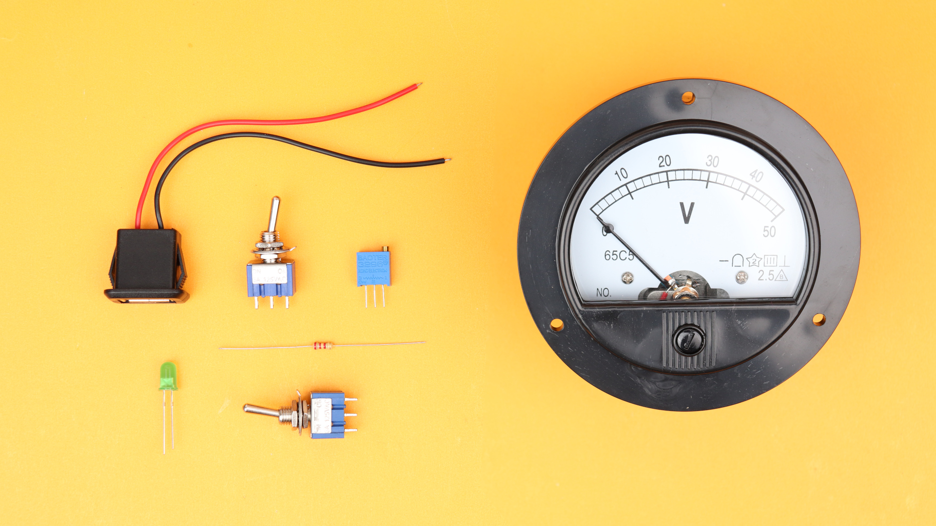 - Finally: the panel meter. And don't worry if you cannot get this exact one here, I will show you in detail how you can make it work with just about any panel meter you can get your hands on.