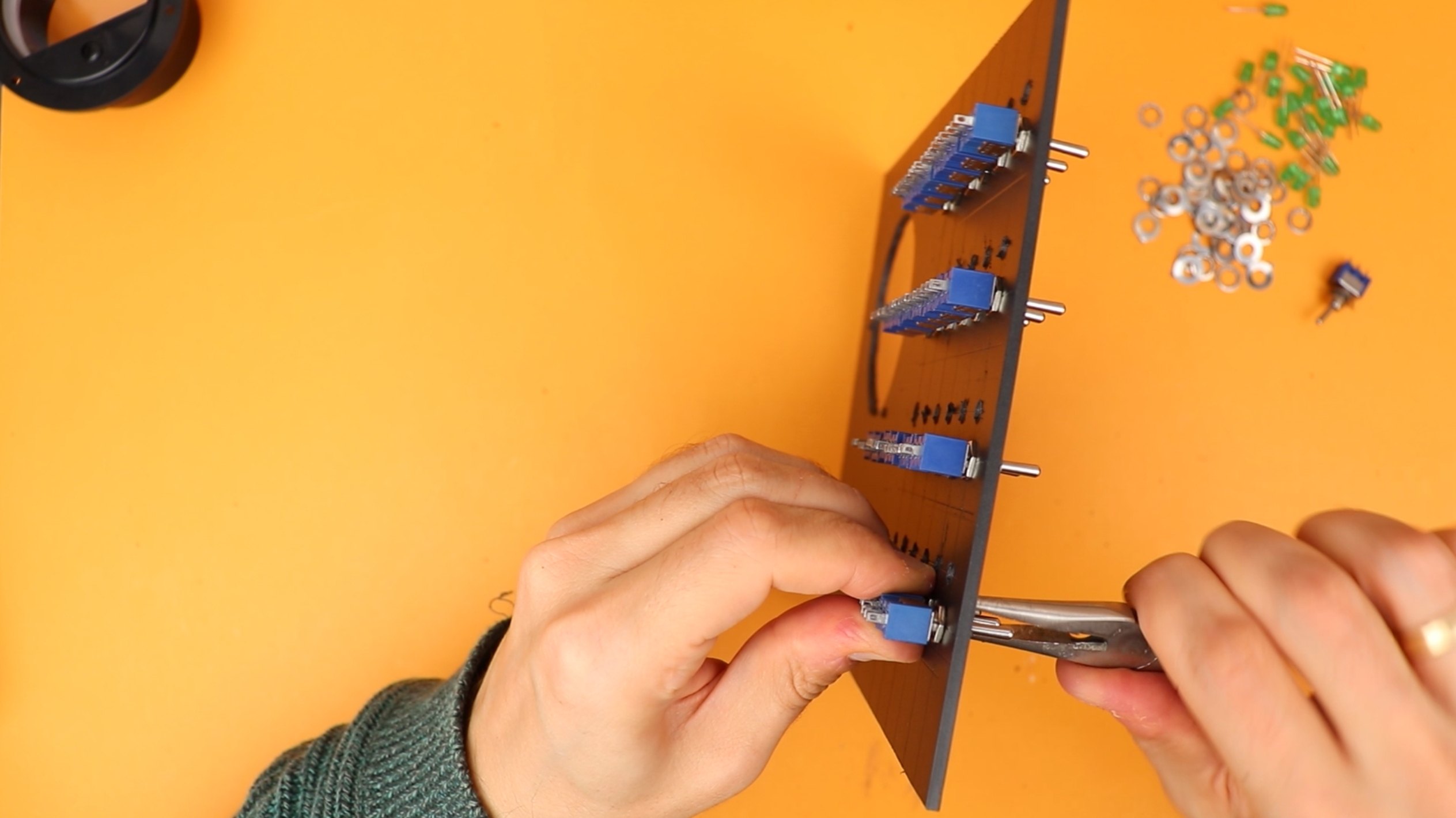 ...connected the resistors to the central terminal of the switches and then to the LED cathodes.