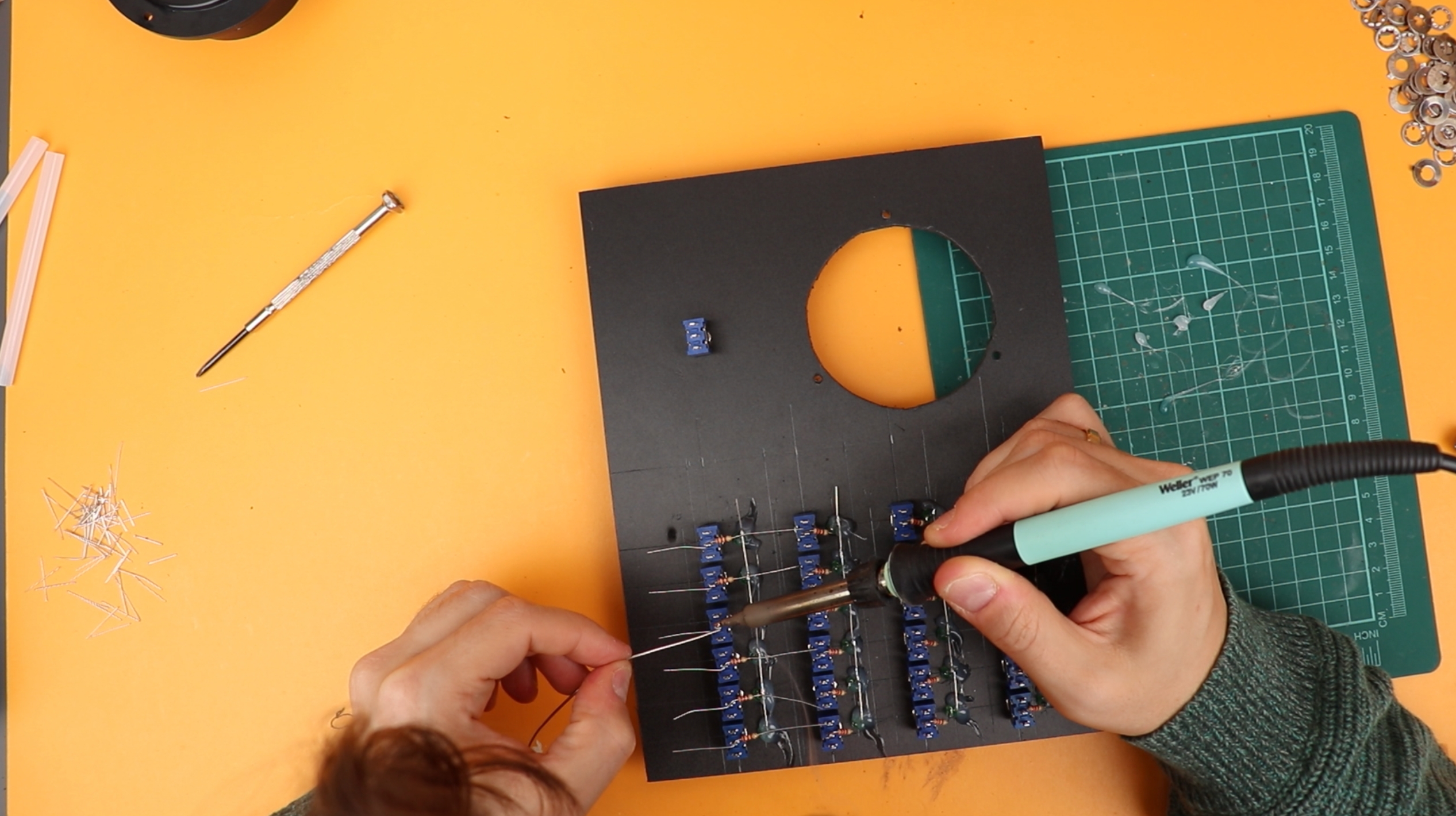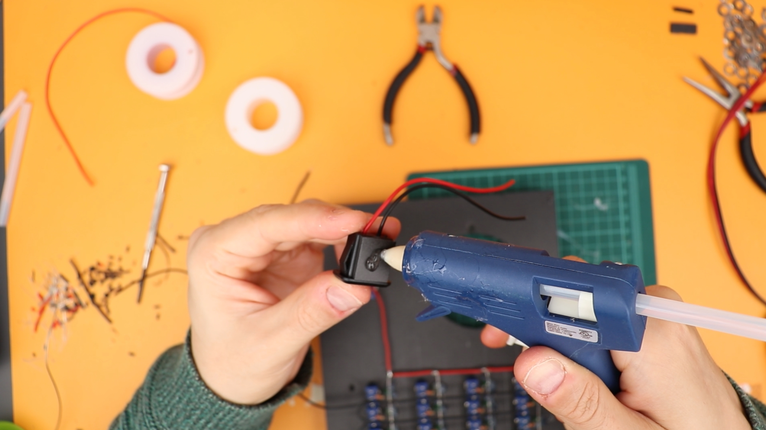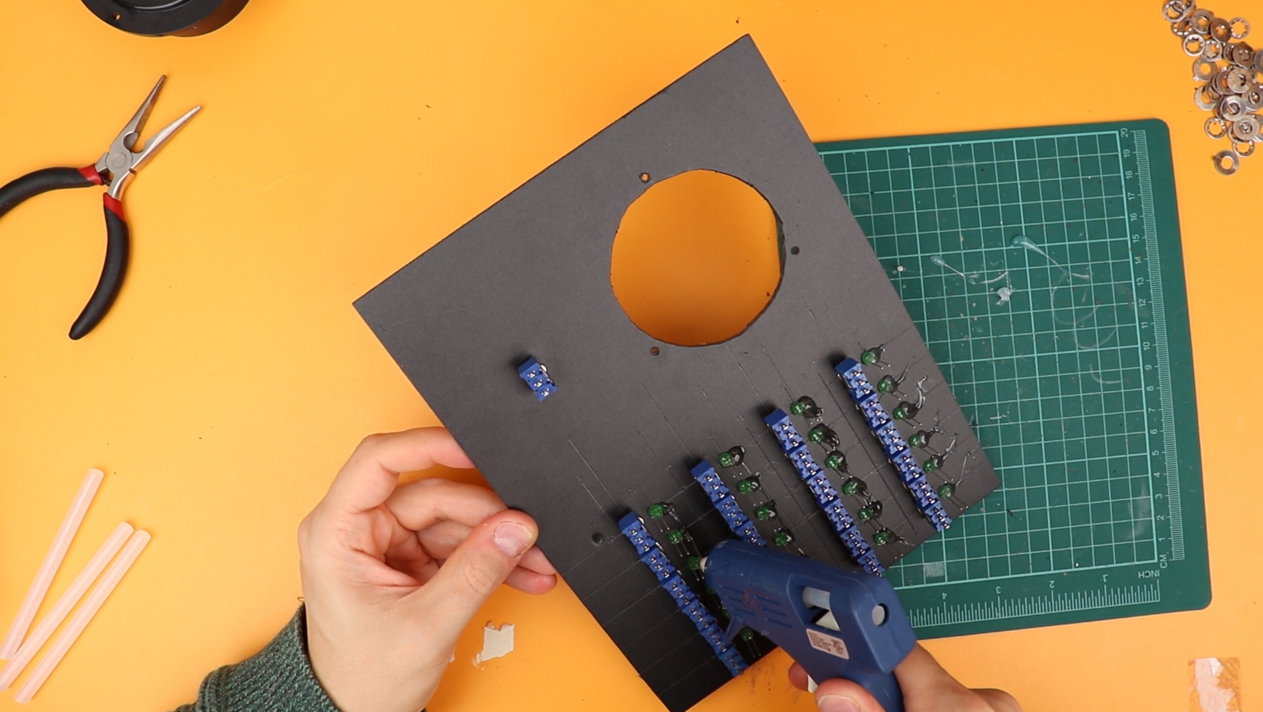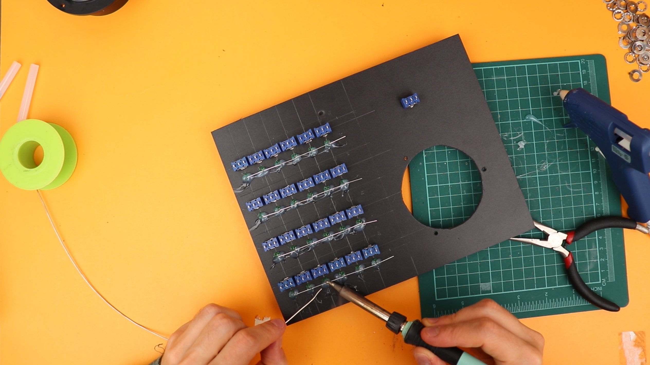 ... followed by the LEDs, and they also got a dab of hot glue each to keep them in place.