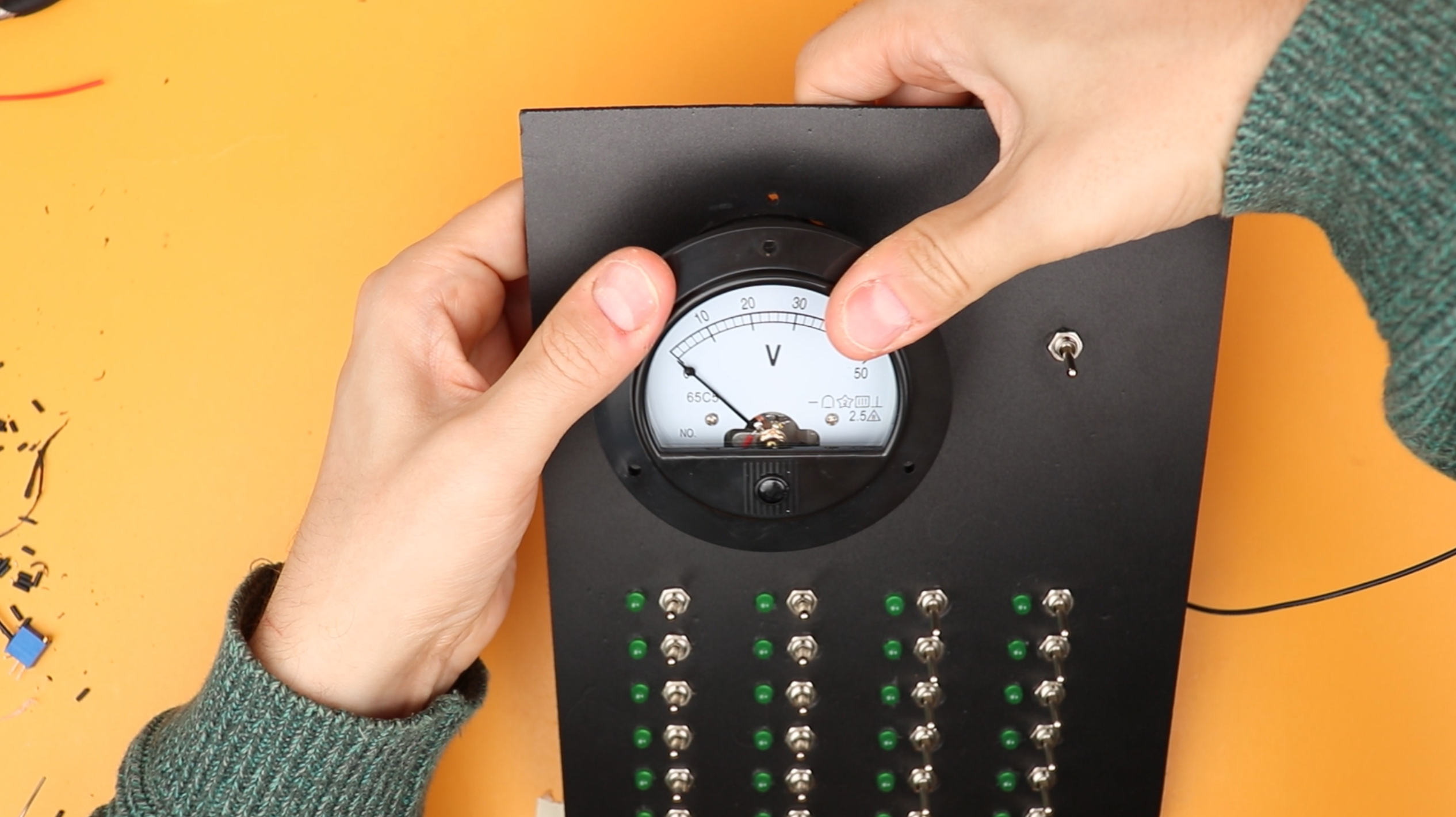 And then I just couldn't wait any longer and connected power, turned on all LEDs, and adjusted the potentiometer so that with all LEDs on the needle maxed out the scale.