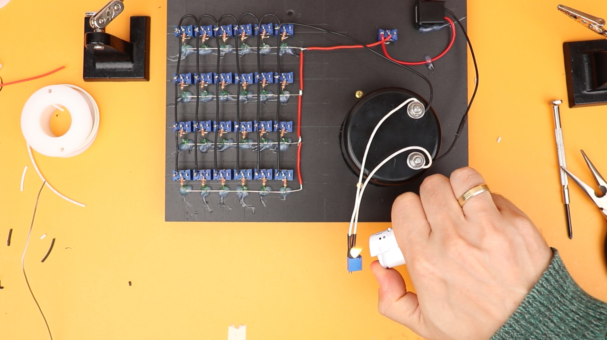 The cool thing: this is all passive components. There is no microcontroller, no integrated circuit, it all just works, straight out of the box! So we basically have to solve two problems:
