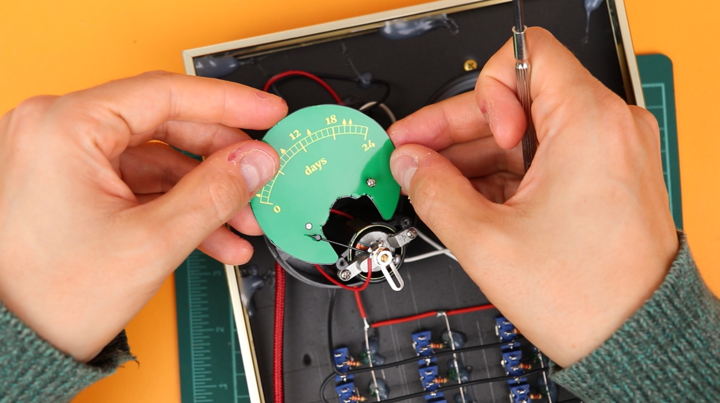 So the position of the needle is a direct measurement of the electric current, and that is exactly what we wanted for our calendar: a way to show how much current is flowing.