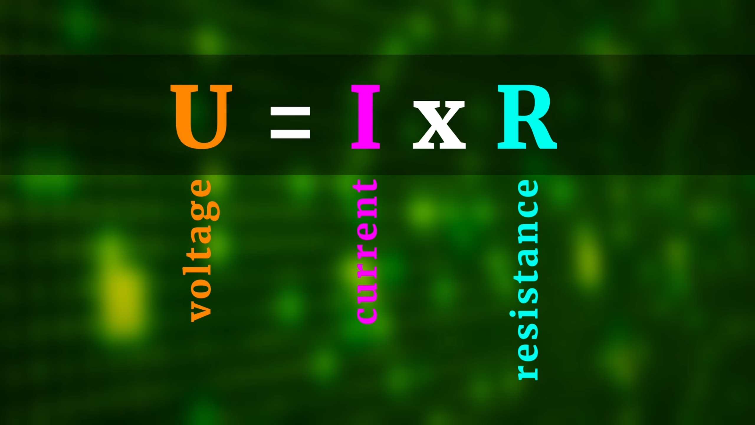 Now we need to decide what current to run this LED at, and around 1mA is a good choice for signal lights that do not need to be super bright. And then we can use Ohm's law, which says that voltage U is current I times resistance R: