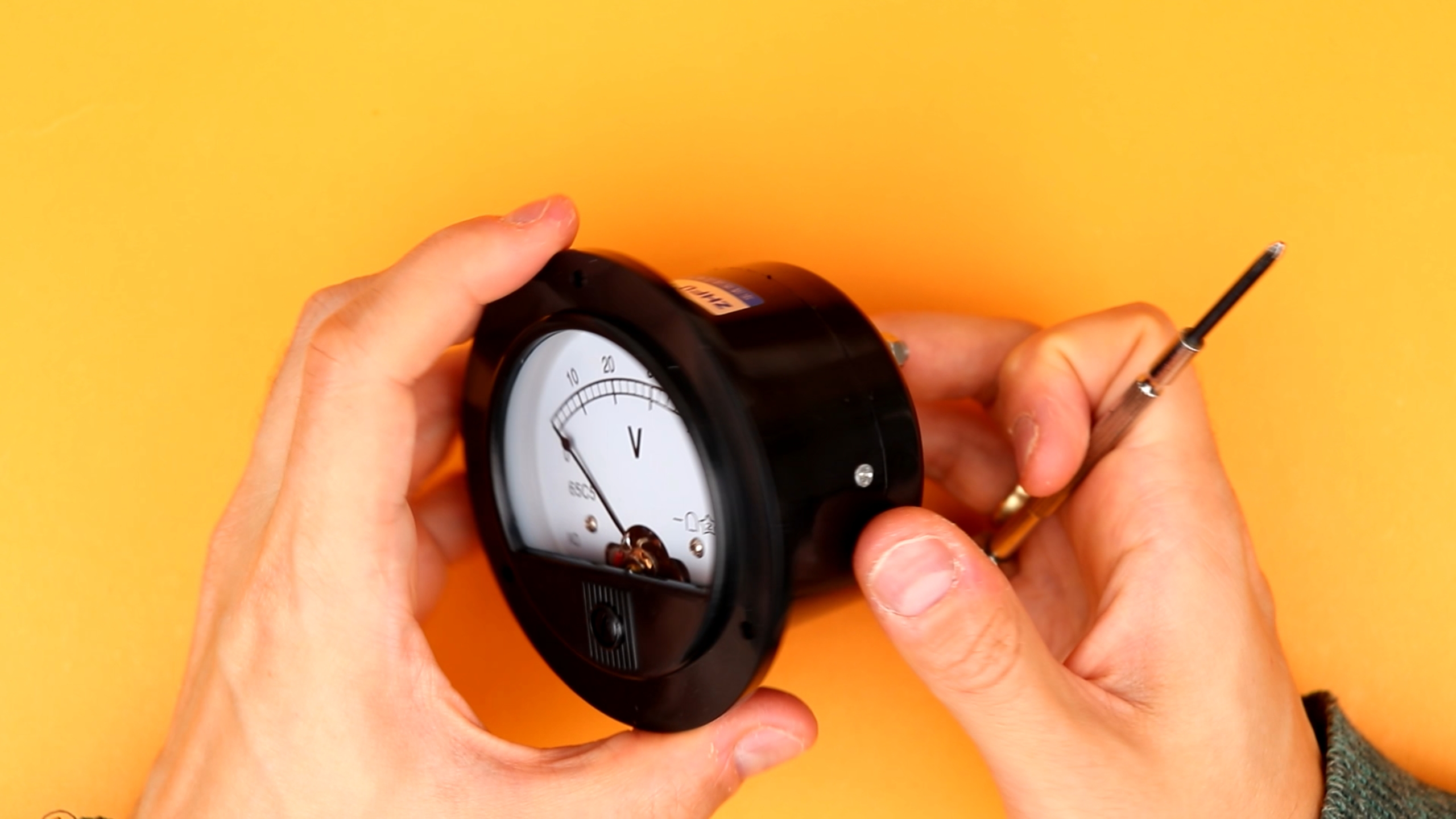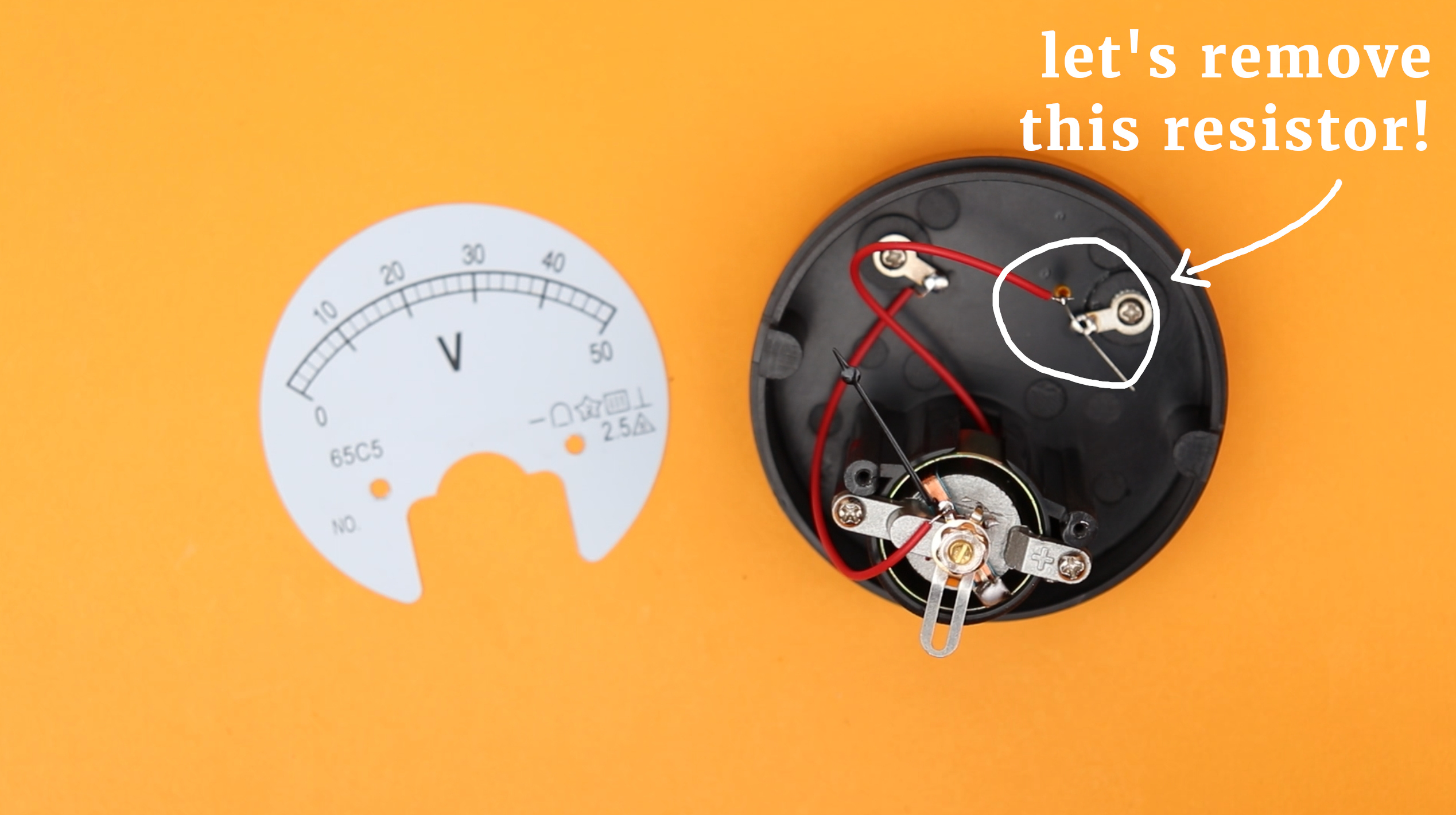 When opening up a panel meter, like the one we are using today, we usually find two things. A combination of a coil and a spring that move the needle across the scale, and there is usually also a resistor in there somewhere. Let's forget about that resistor for now and look at the coil.