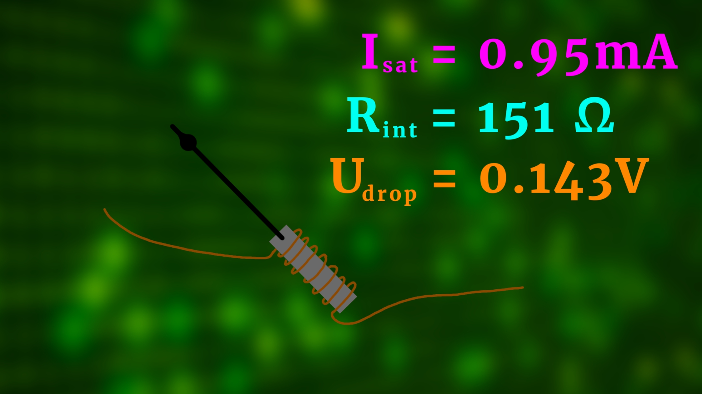 And these two numbers, the saturation current and the internal resistance, is all we need! Because now we can just use Ohm's law again!