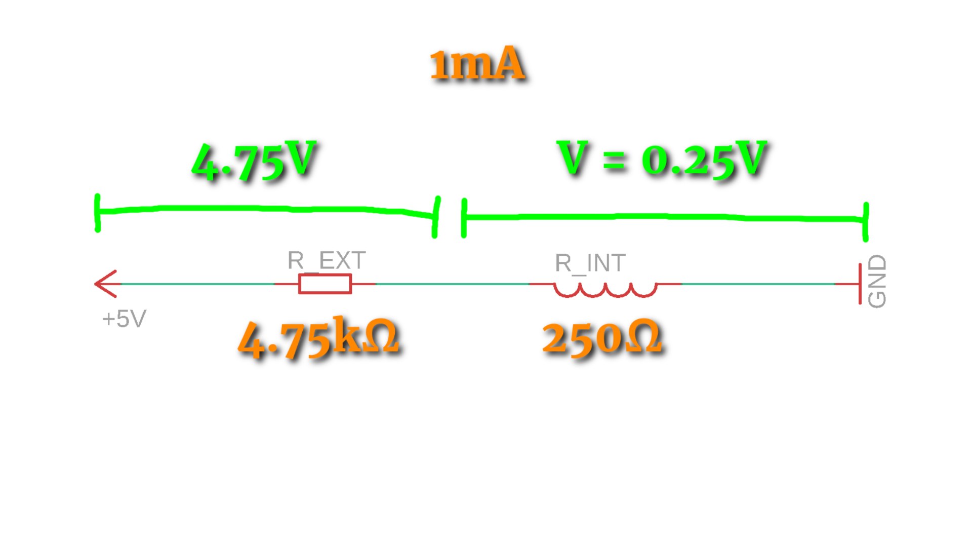 But if we want the display to max out at 5V instead, then we need to adjust the external resistor to around 4.75kΩ: