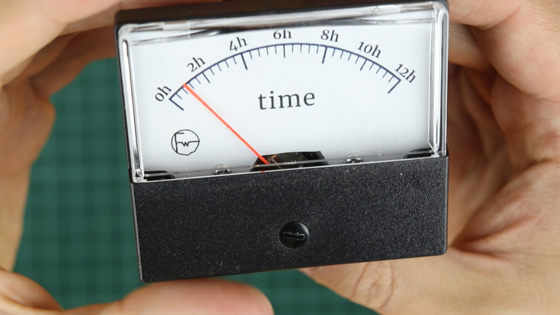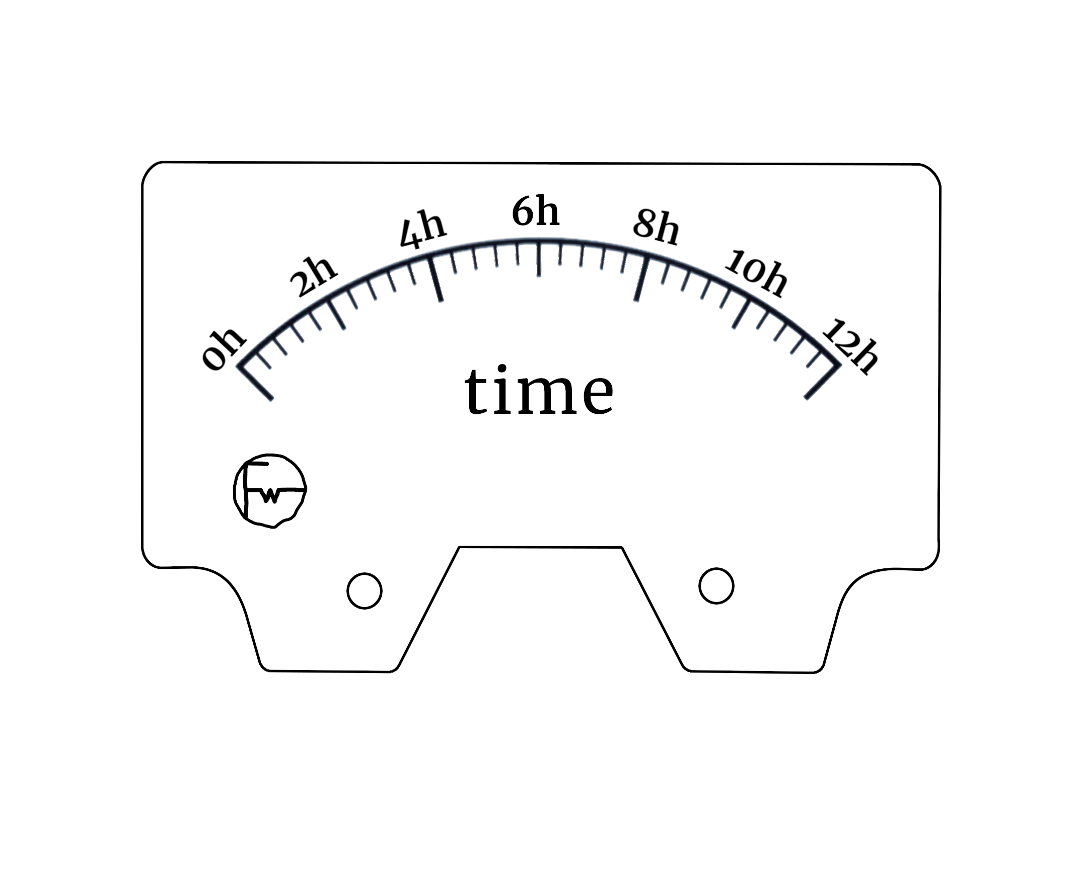 The last thing I did was cosmetic: I scanned the original panel meter's scale and edited it, so that it now shows the time properly. This is how it looks like (download it here):
