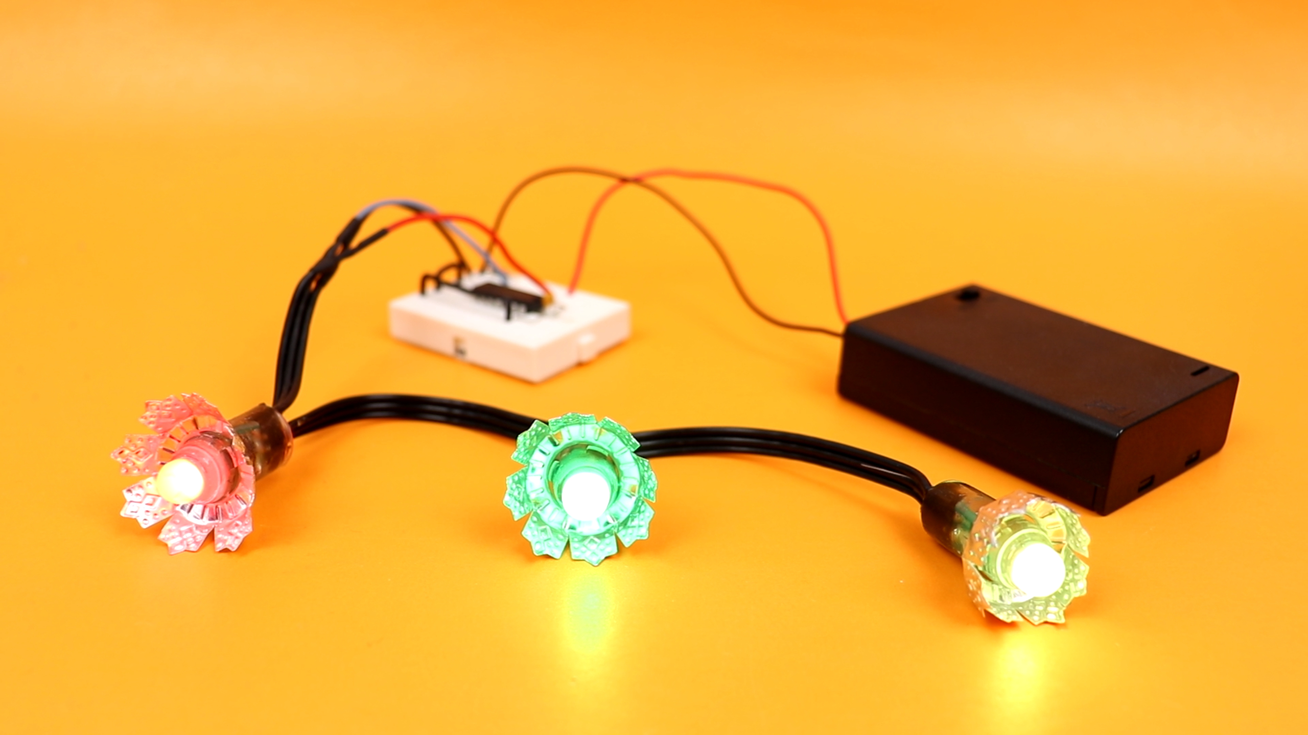But, honestly, at this point all we have done is build overly complicated fairy lights. The main appeal of the Christmas stars comes, yes, from the blinking colors, but also from the materials used.