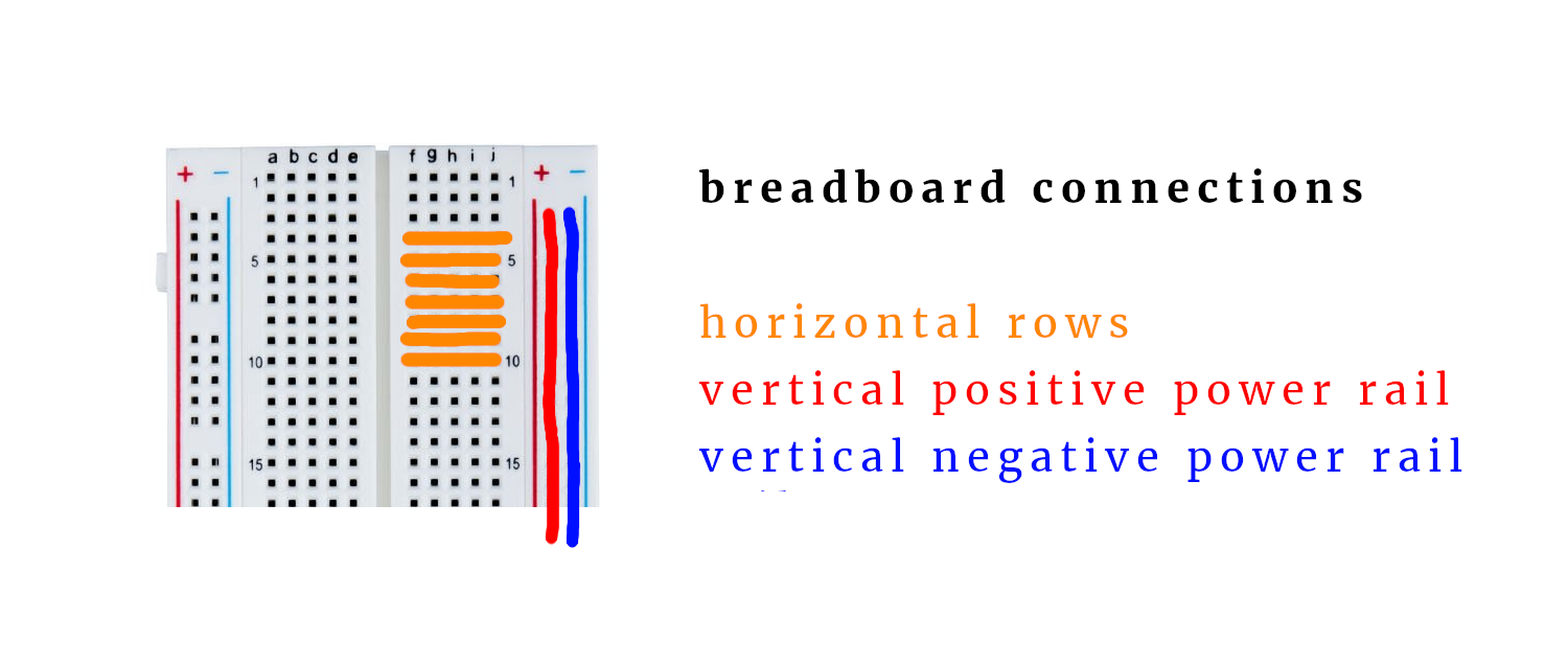 OK, great, now your component is plugged in. What is it electrically connected to now? The answer: it depends! You see, a breadboard comes with rows and columns:
