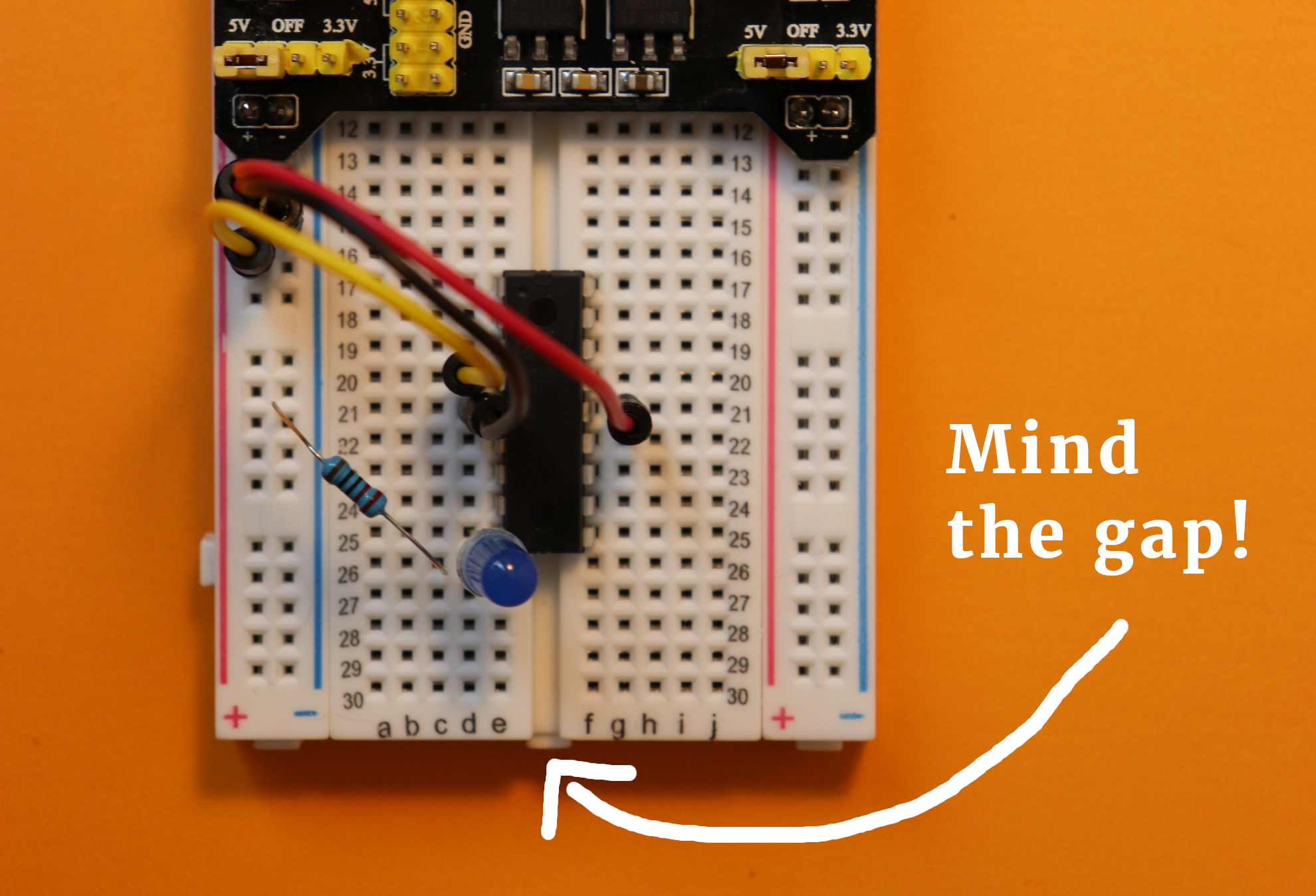 There is a quite prominent gap in the middle of almost all breadboards.