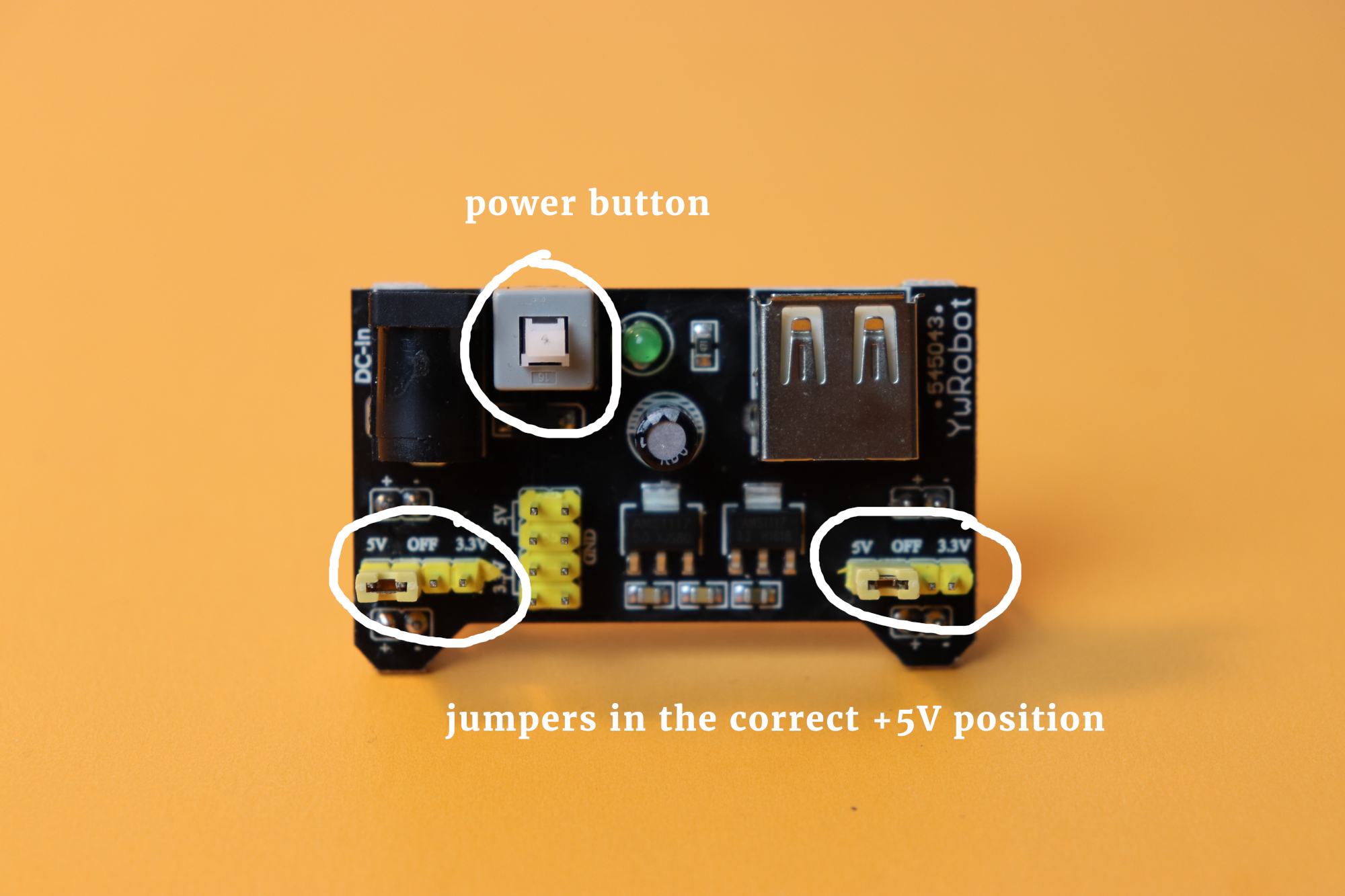 There are two options. The first one amounts to using a USB breadboard power supply like this one right here: