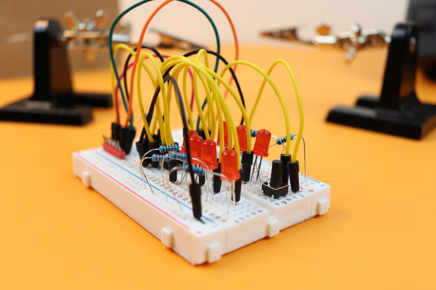 The disadvantage is obvious: the wires are a bit short, but even that can still be too long. Here is a photo of a circuit I built that became quite chaotic: