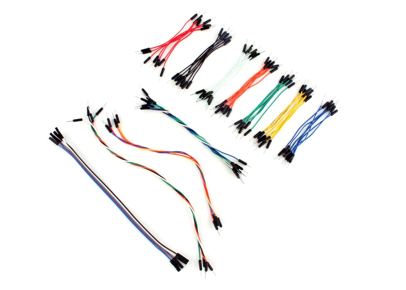 As you can see, Dupont wires exist in male-male, male-female, and female-female configurations. It makes them the most versatile of all wires, since you can use them to connect your breadboard circuit to external components that do not fit on the breadboard itself. For that reason they are extremely useful.