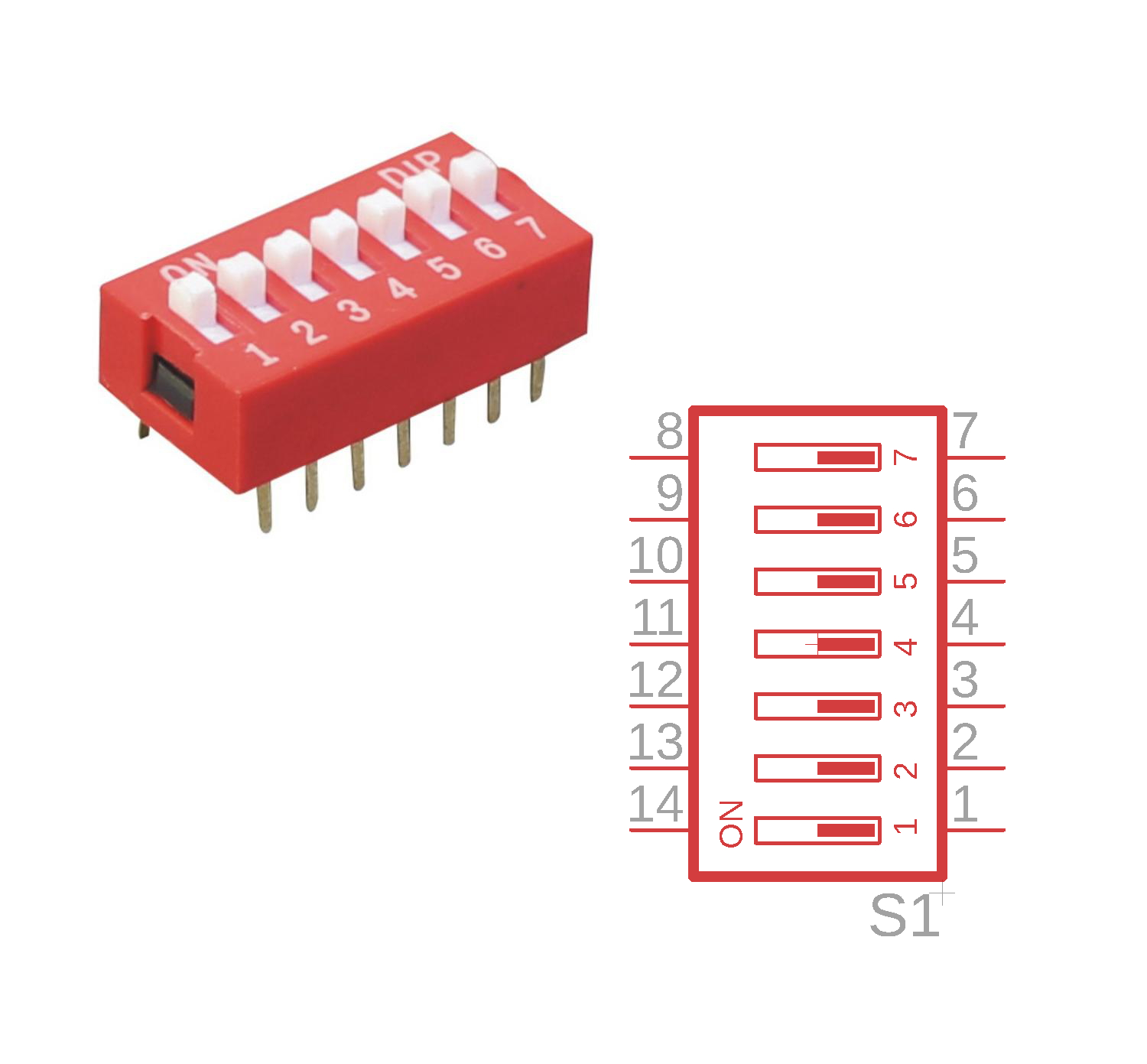 DIP stands for “Dual In-line Pin” and these switches are used primarily to configure logic circuits. They should not be used for heavy loads.