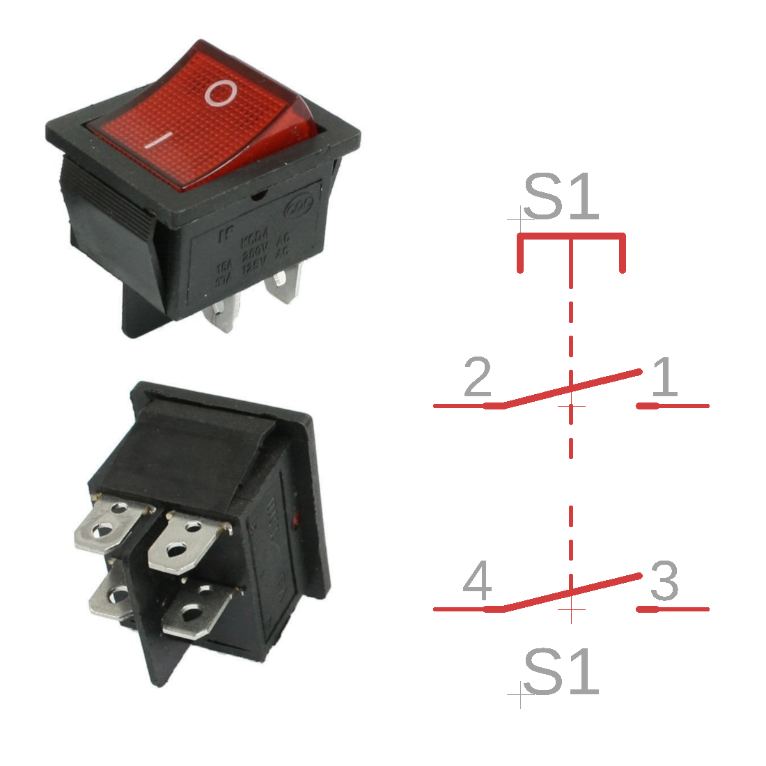 2 pole, 2 throws, 125V AC, 10A.