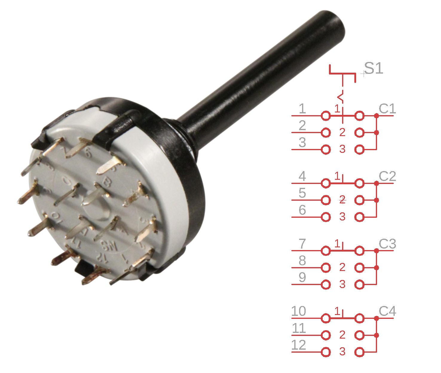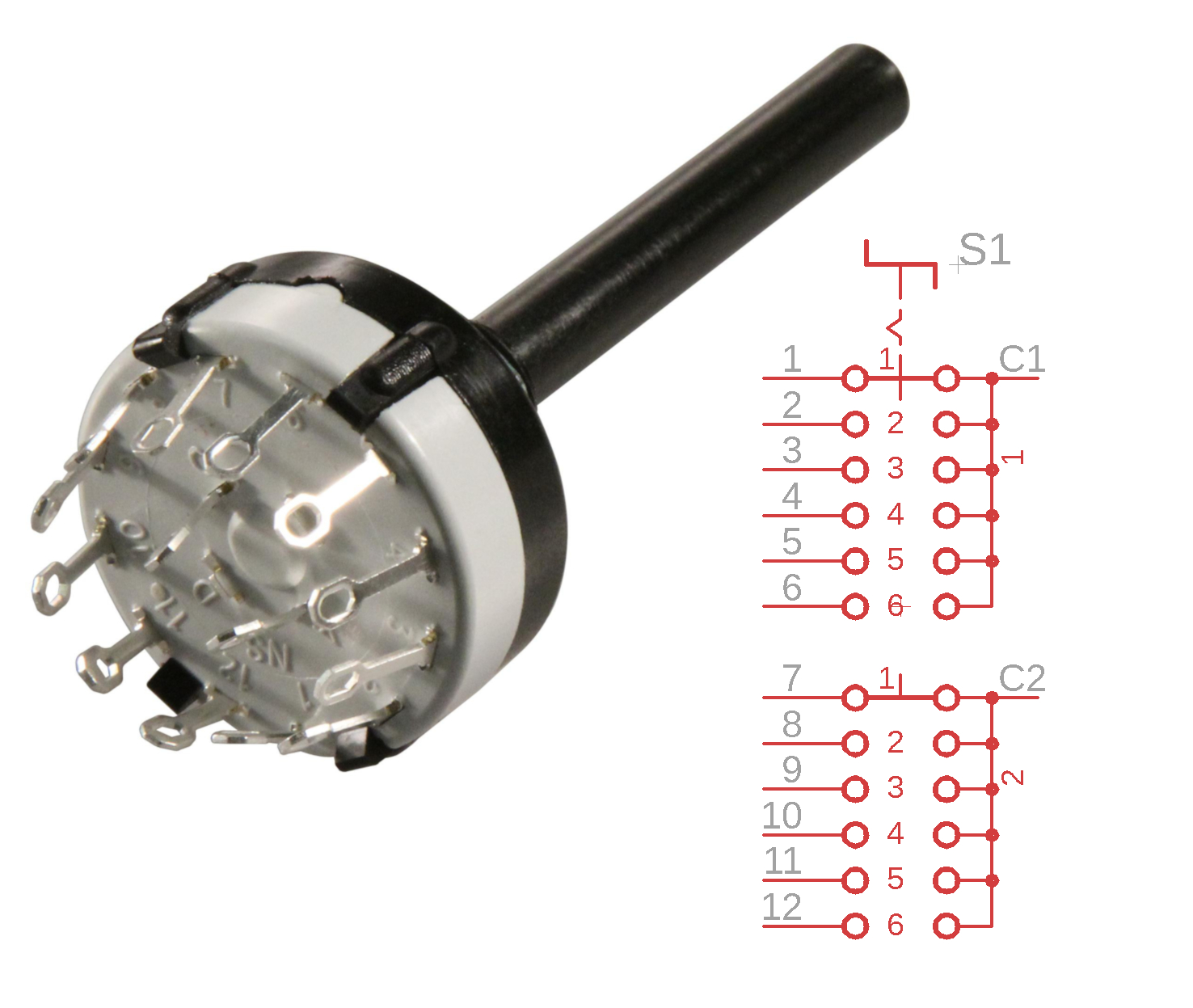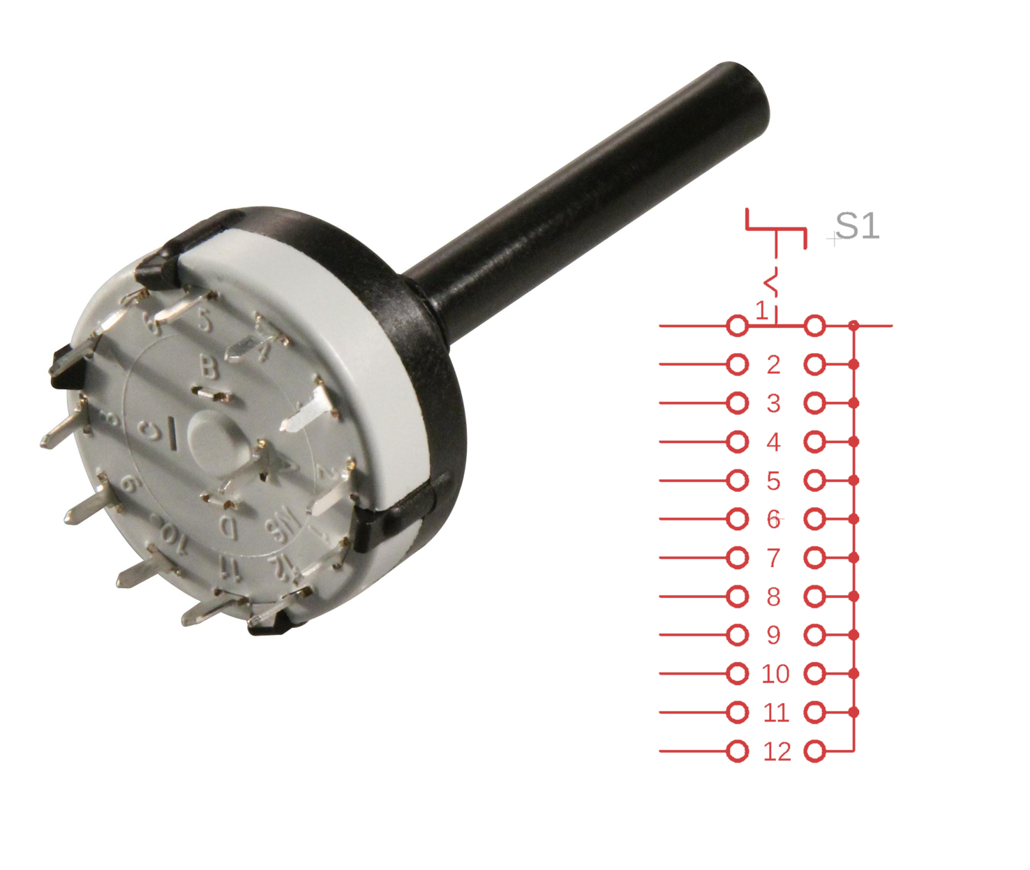 Rotary Switch 12 positions, 1 pole