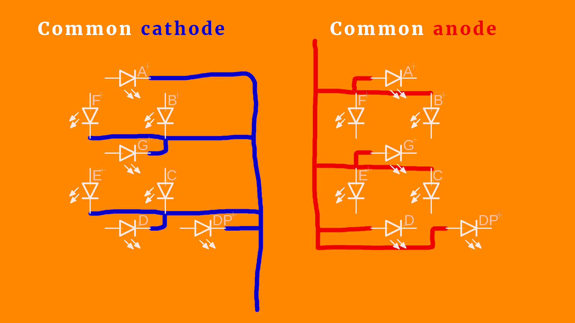7-segment displays consist of seven LEDs (or eight, if they have a decimal point). They have one common pin, which can either be the cathode or the anode: