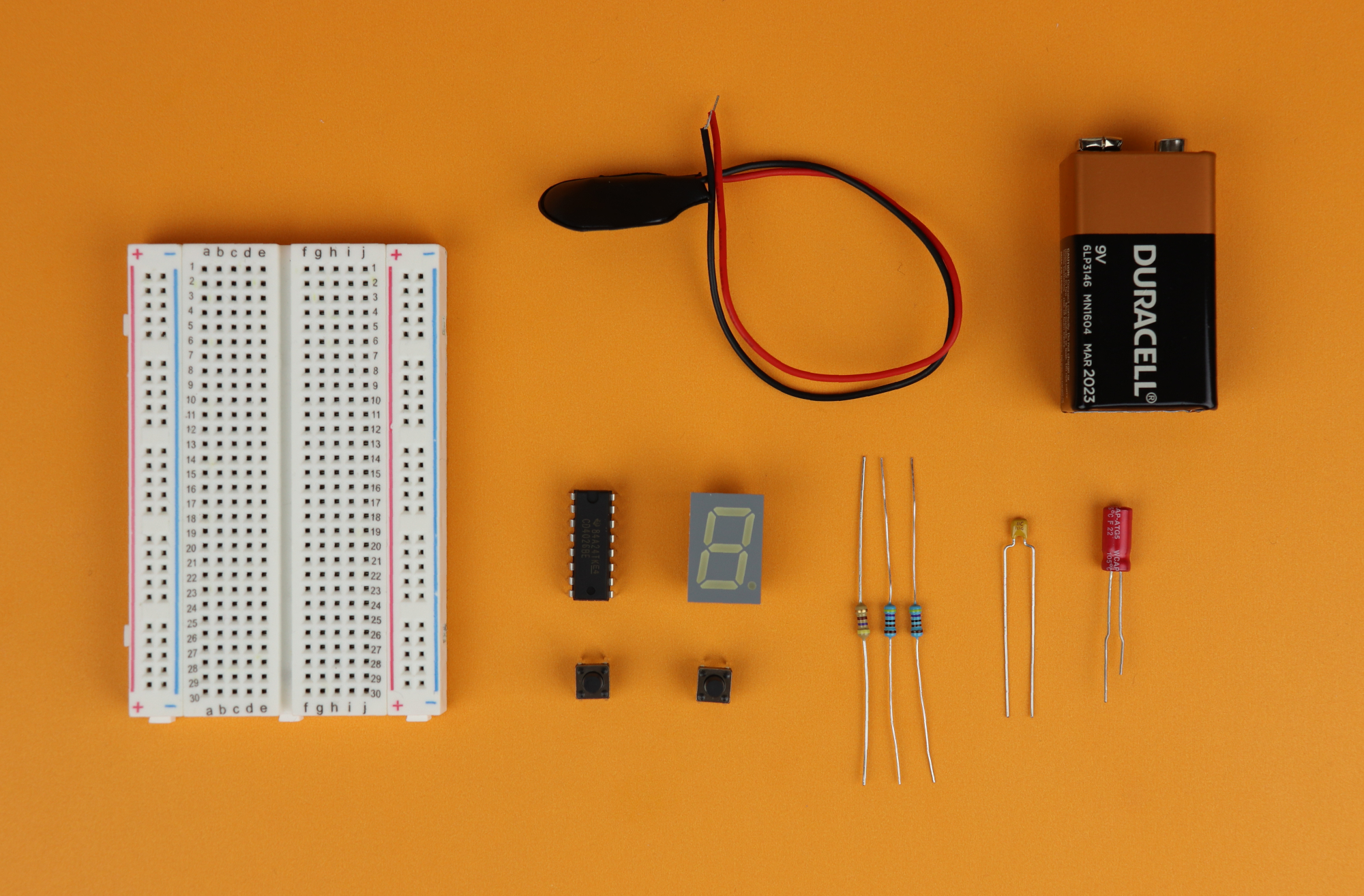 Here is a picture of all the components that are needed for the CD4026 counter: