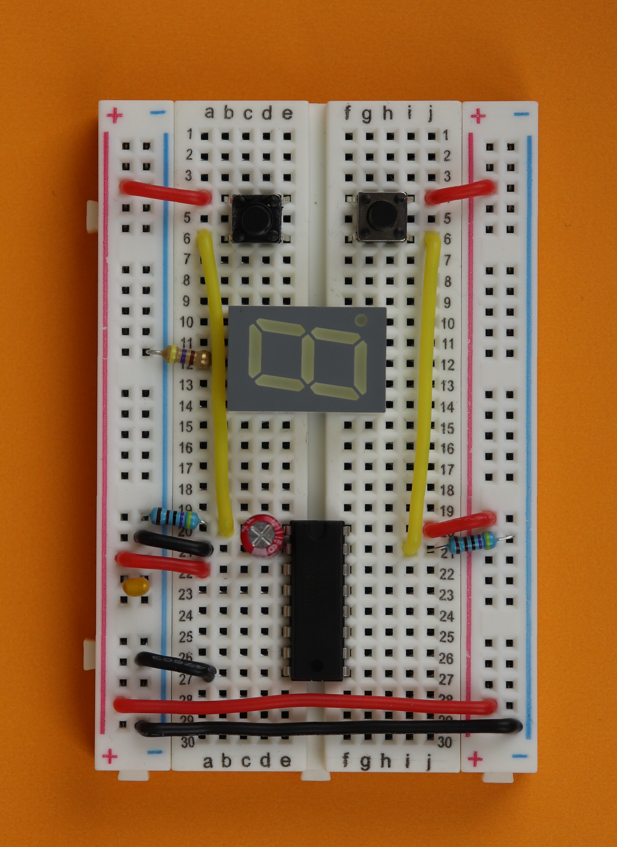 And that's it! If you press the left button, the counter should increase one by one. After it reaches 9 it goes back to zero. If you want to reset the counter, press the right button.