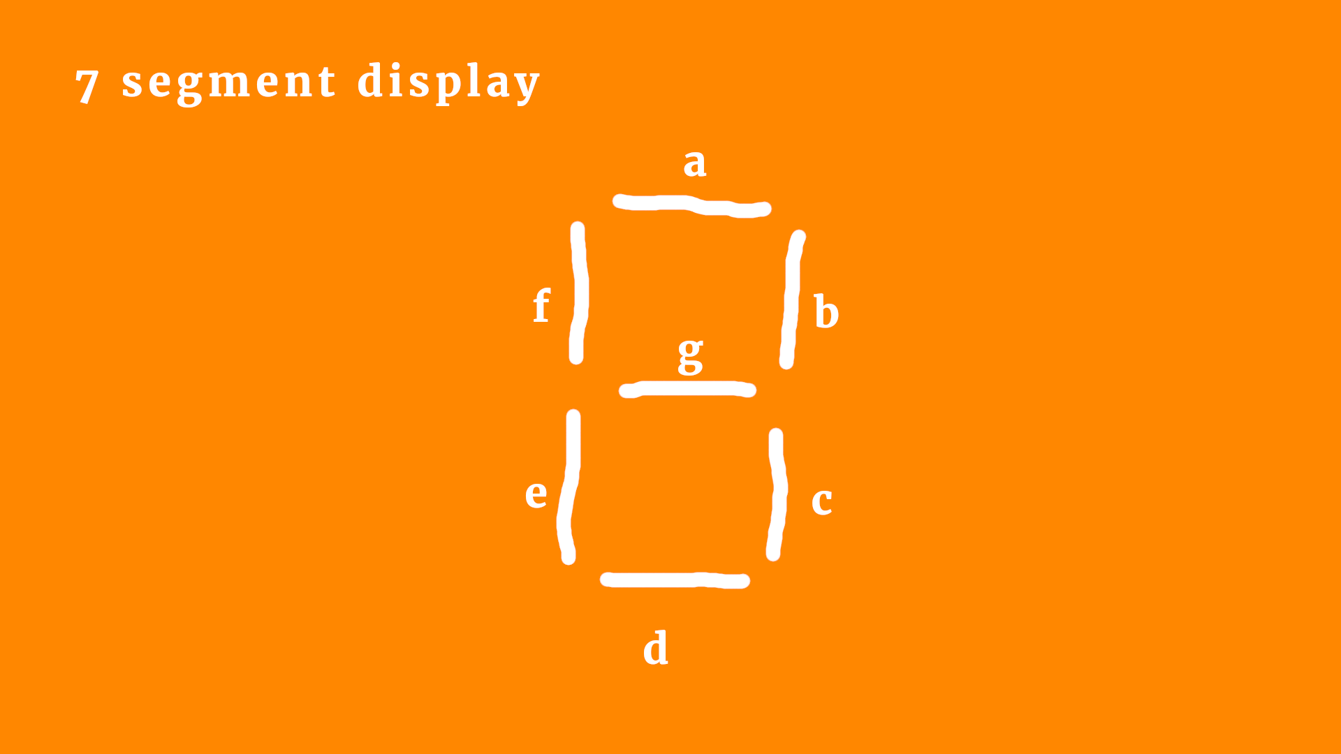 Maybe this was confusing, but logic gates are very simple objects that can be very helpful sometimes. Say we want to reset the CD4026 7-segment counter at number 3. At a displayed number 3, see the diagram above, the segments a,b,c,d, and g are ON whereas the segments e and f are OFF. Using logic gates we could check for this condition and connect the output to the reset input of the CD4026 :)