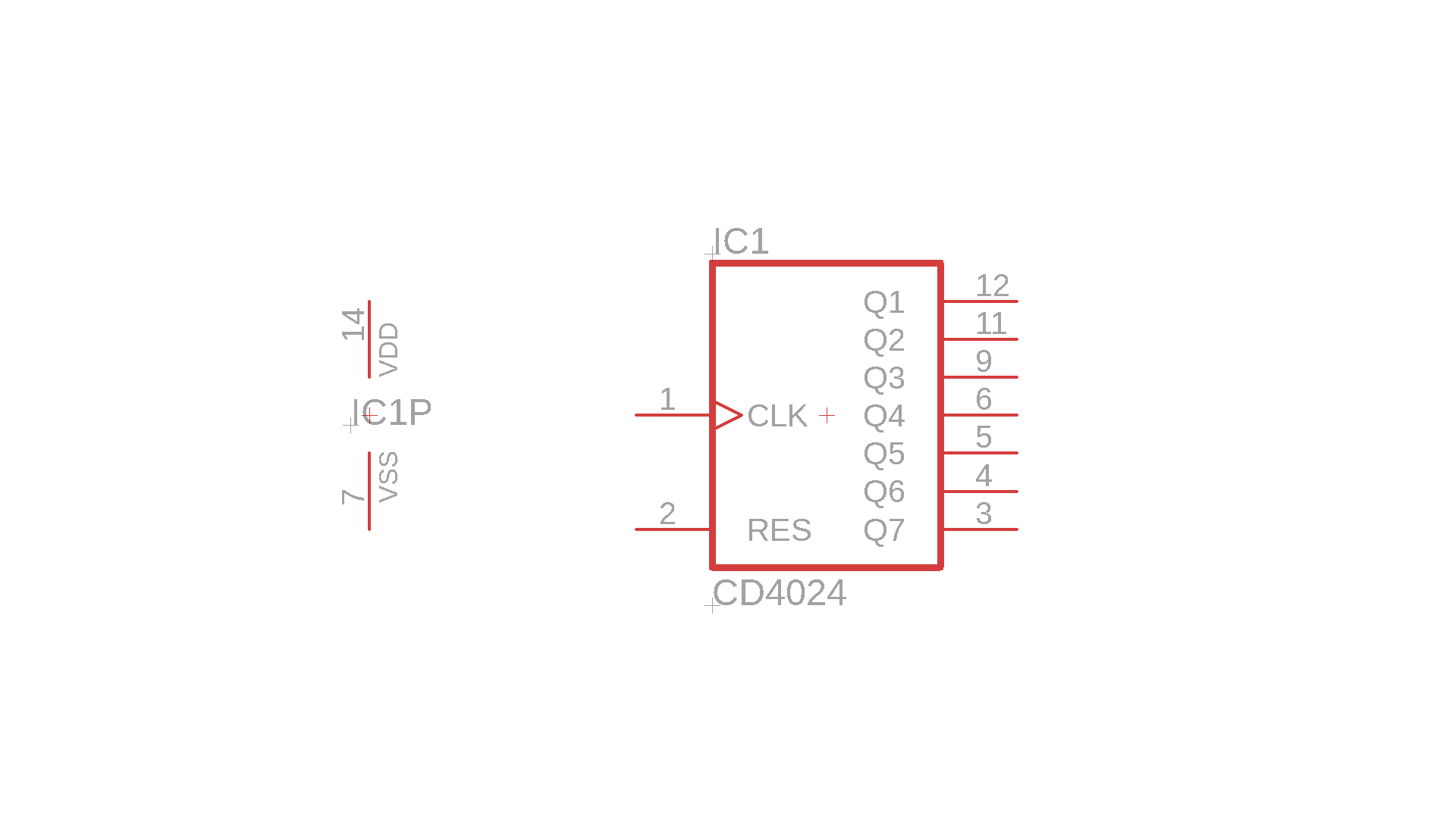 Everything works exactly as with the CD4020, only now there are all outputs from Q1-Q7 (counting from 0 to 127), and the CLK serves as the clock pin.