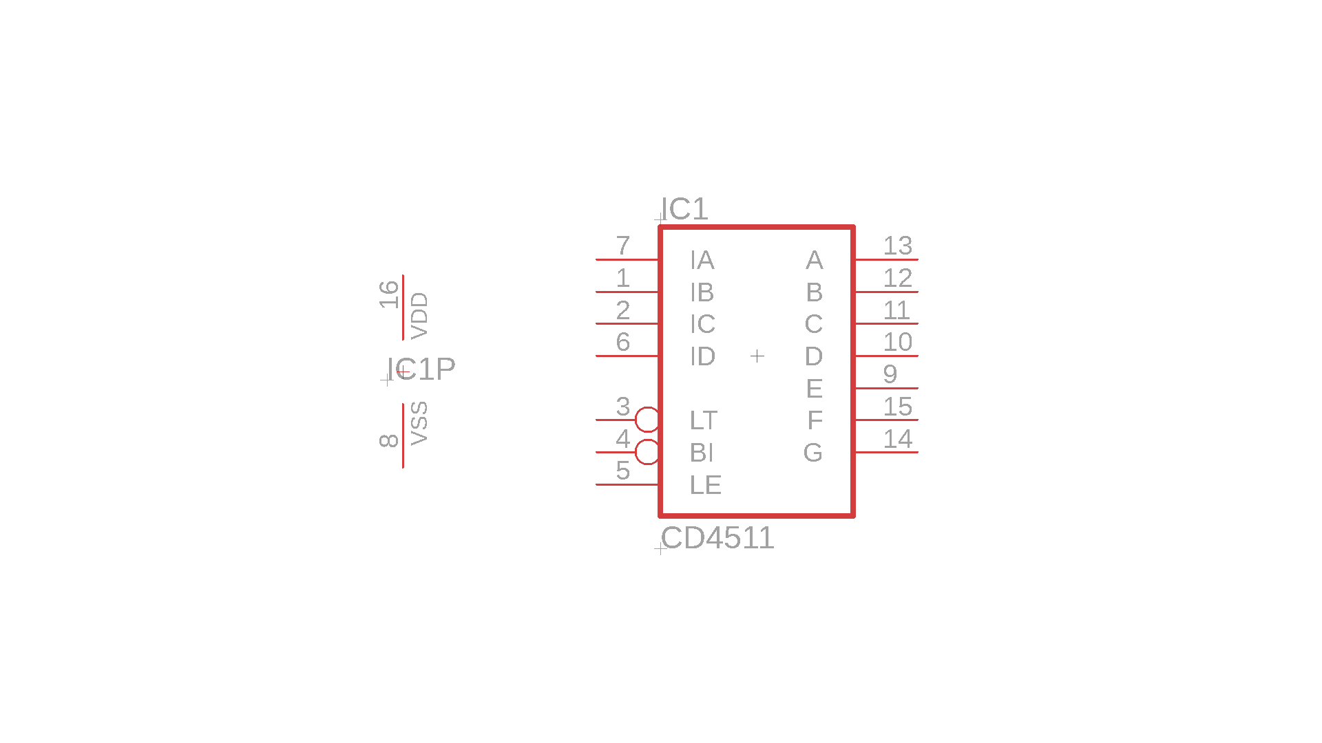- LE stands for latch enable. Its function is very similar to that of the STROBE pin on the CD4094 shift register": whenever it is set to 0, the value on pines IA-ID is encoded into 7 segment, but when it is set to high then the input on IA-ID is ignored. This way one can use the same IA-ID-lines for multiple CD4511 chips :)
